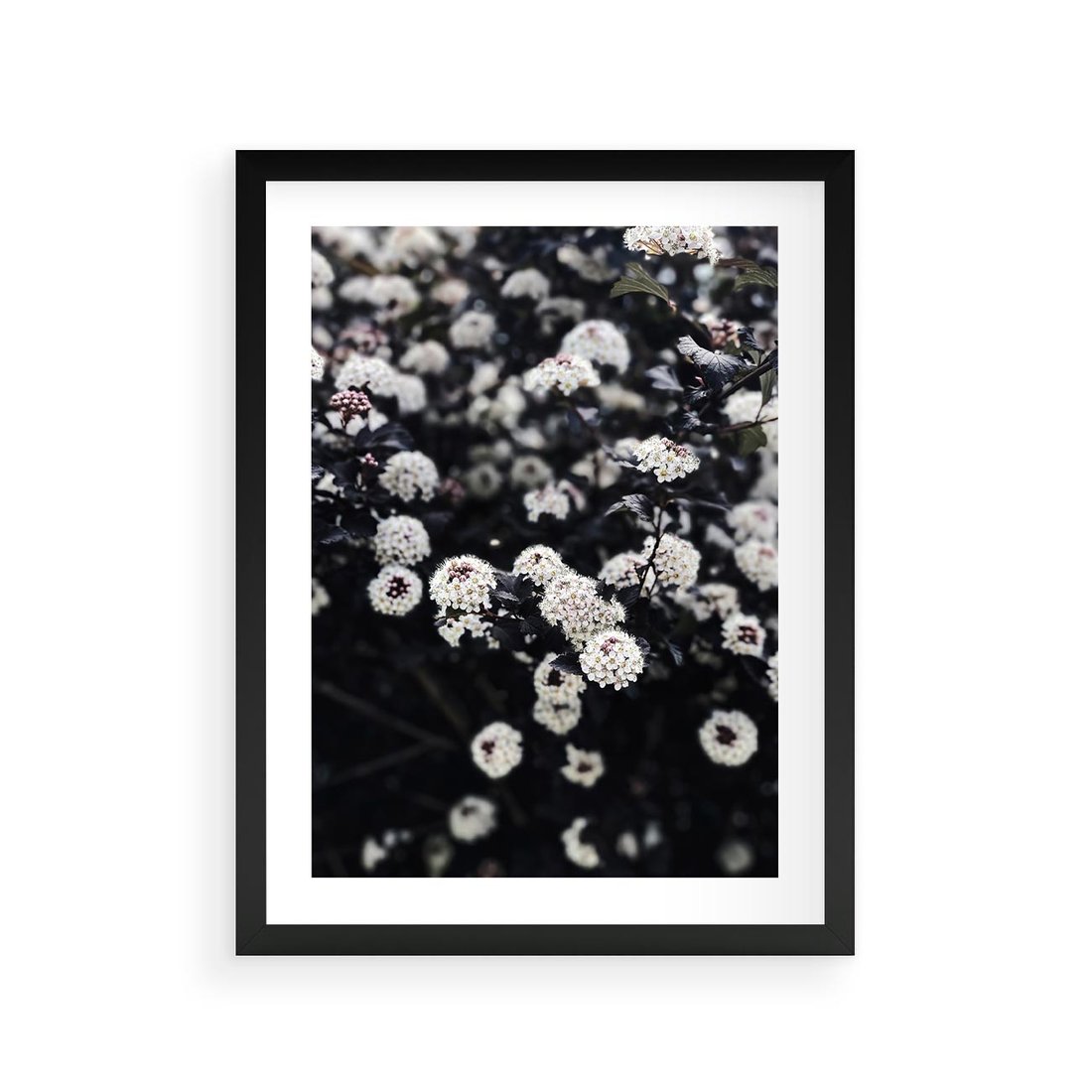 Plakat w ramie 30x40 - Białe Kwiaty na Kwitnącym Krzewie - białe kwiaty, kwitnący krzew - rama czarna