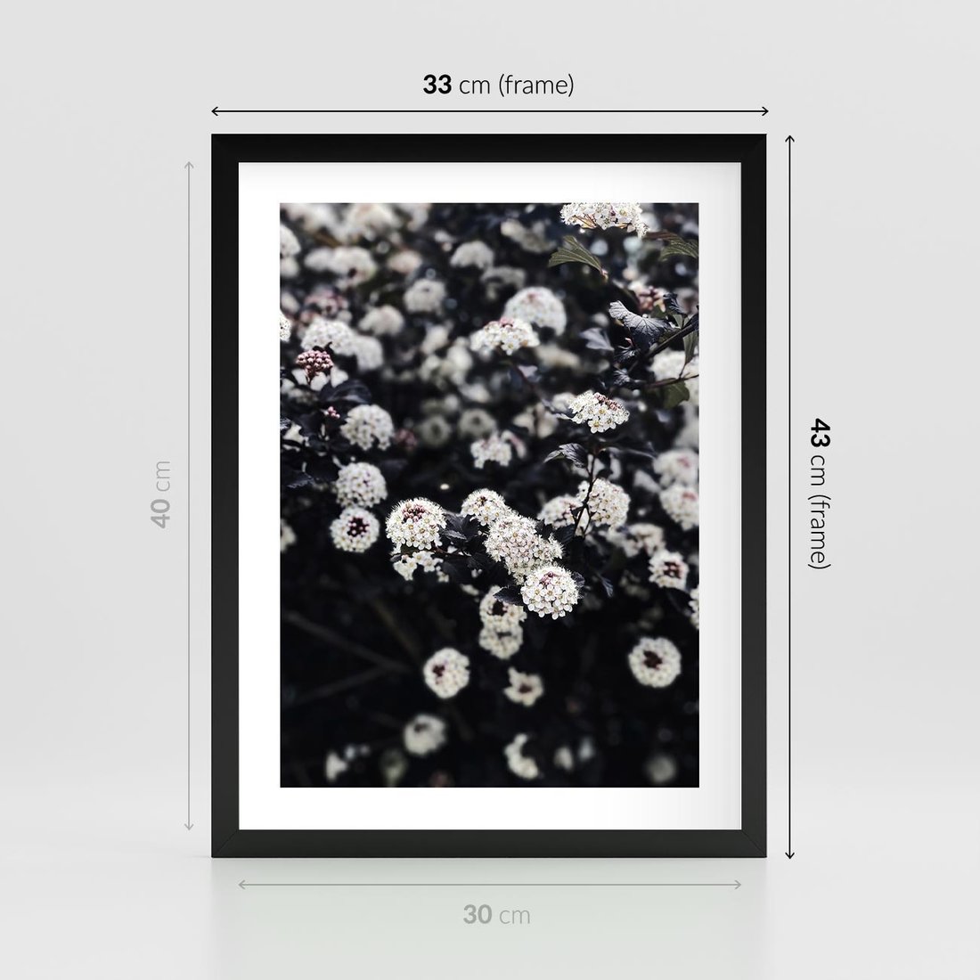 - Plakat w ramie 30x40 - Białe Kwiaty na Kwitnącym Krzewie