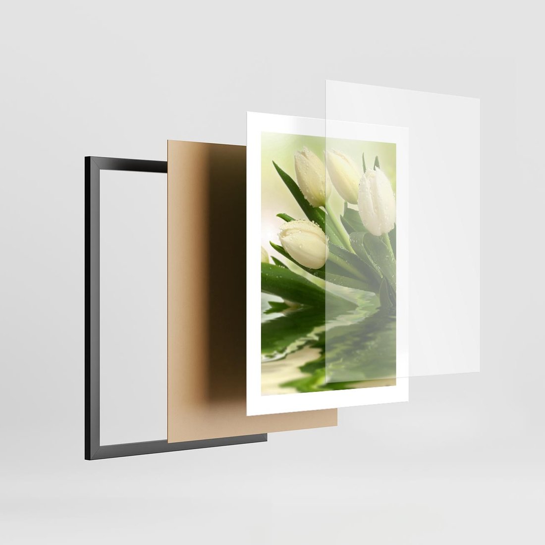 Plakat w ramie 30x40 - Białe Piękno - białe, tulipany - rama czarna