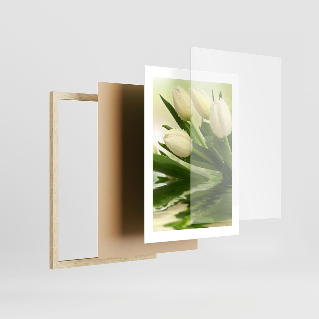 Plakat w ramie 30x40 - Białe Piękno - białe, tulipany - rama drewno
