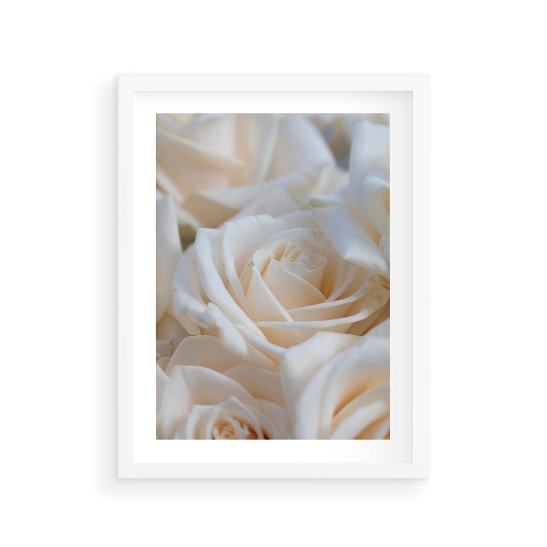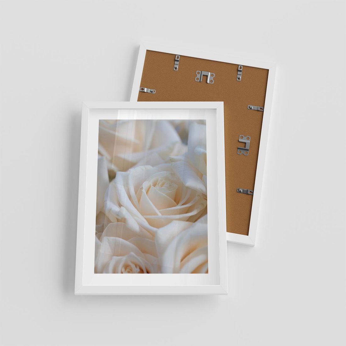 Plakat w ramie 30x40 - Białe róże piękności - białe, róże - rama biała