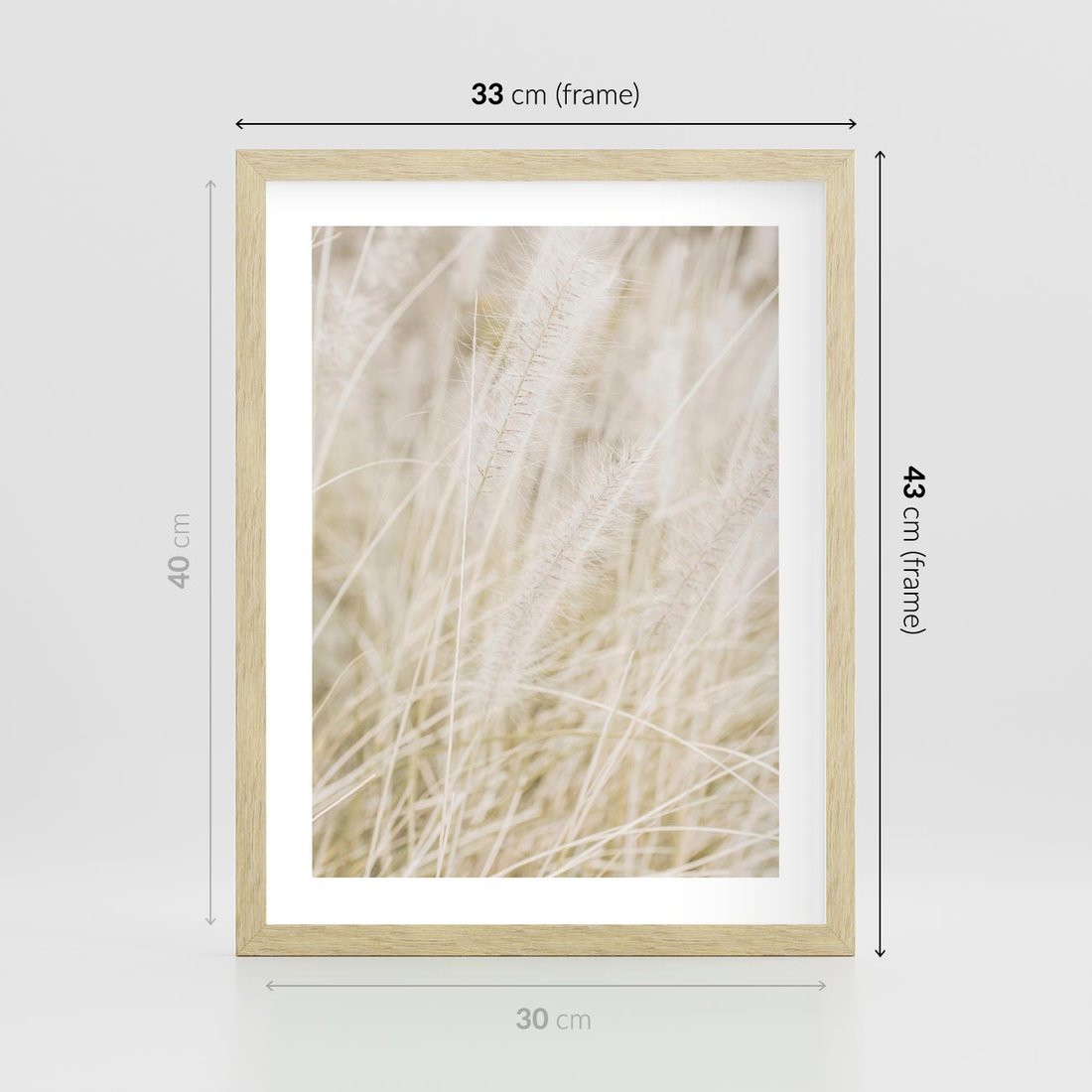 Plakat w ramie 30x40 - Białe Trawy Pampas - suche trawy, białe trawy - rama drewno
