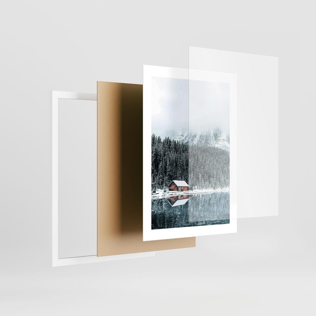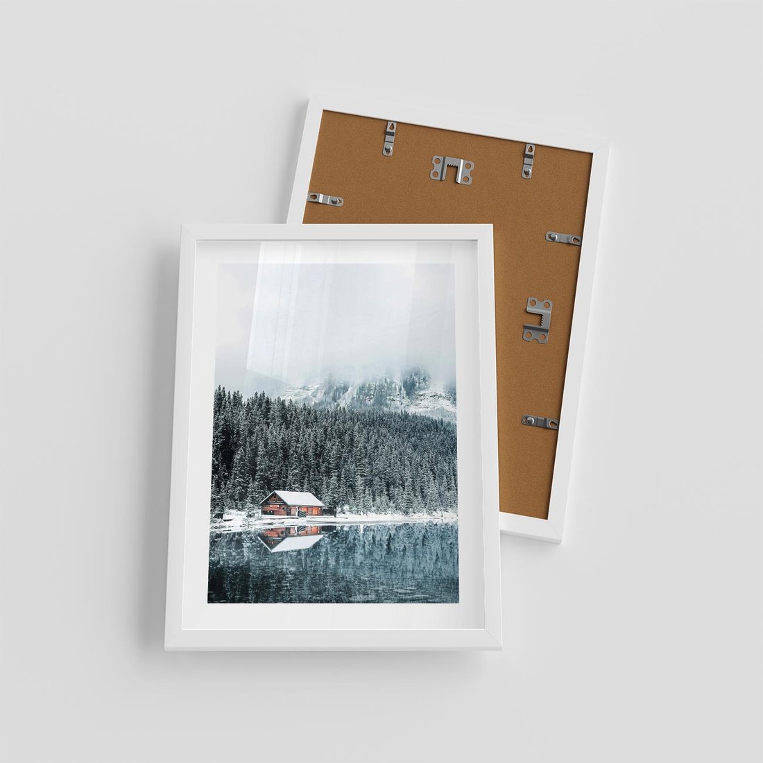 Plakat w ramie 30x40 - Biały Domek - domek w górach, zima - rama biała
