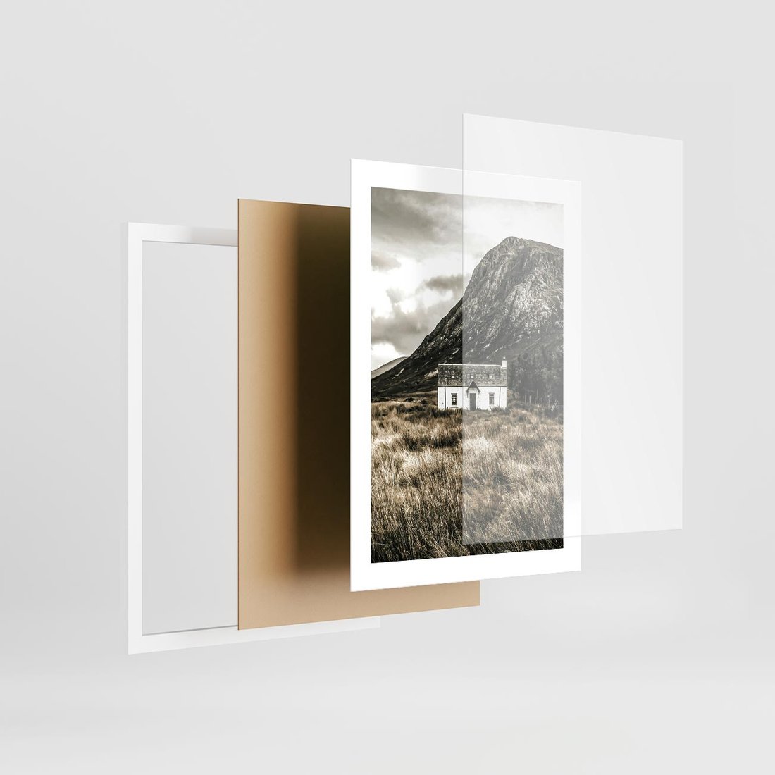 To ujęcie białego domku w górach, utrzymane w odcieniach sepii. Obraz ten emanuje nostalgią i spokojem, oddając urok wiejskiego krajobrazu.