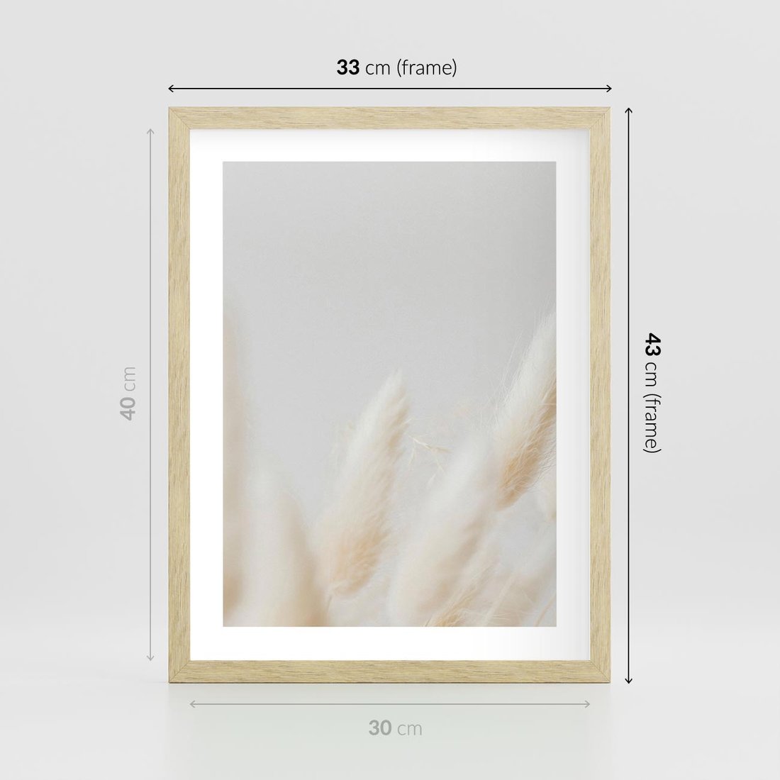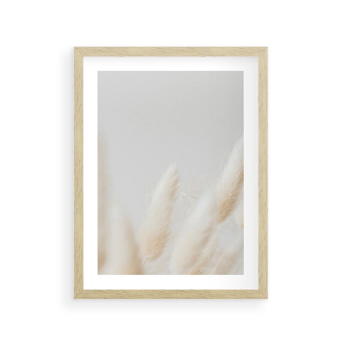 Plakat w ramie 30x40 - Biały Spokój - białe trawy, suche trawy pampas - rama drewno