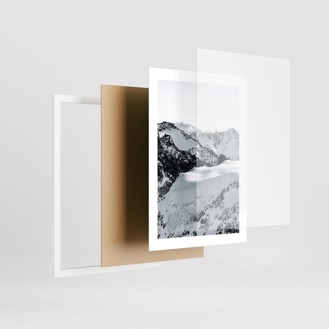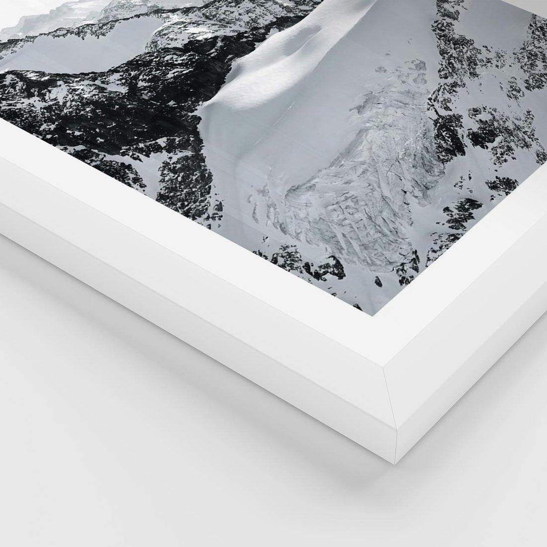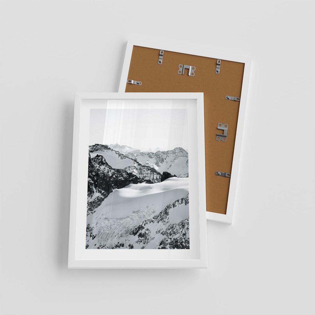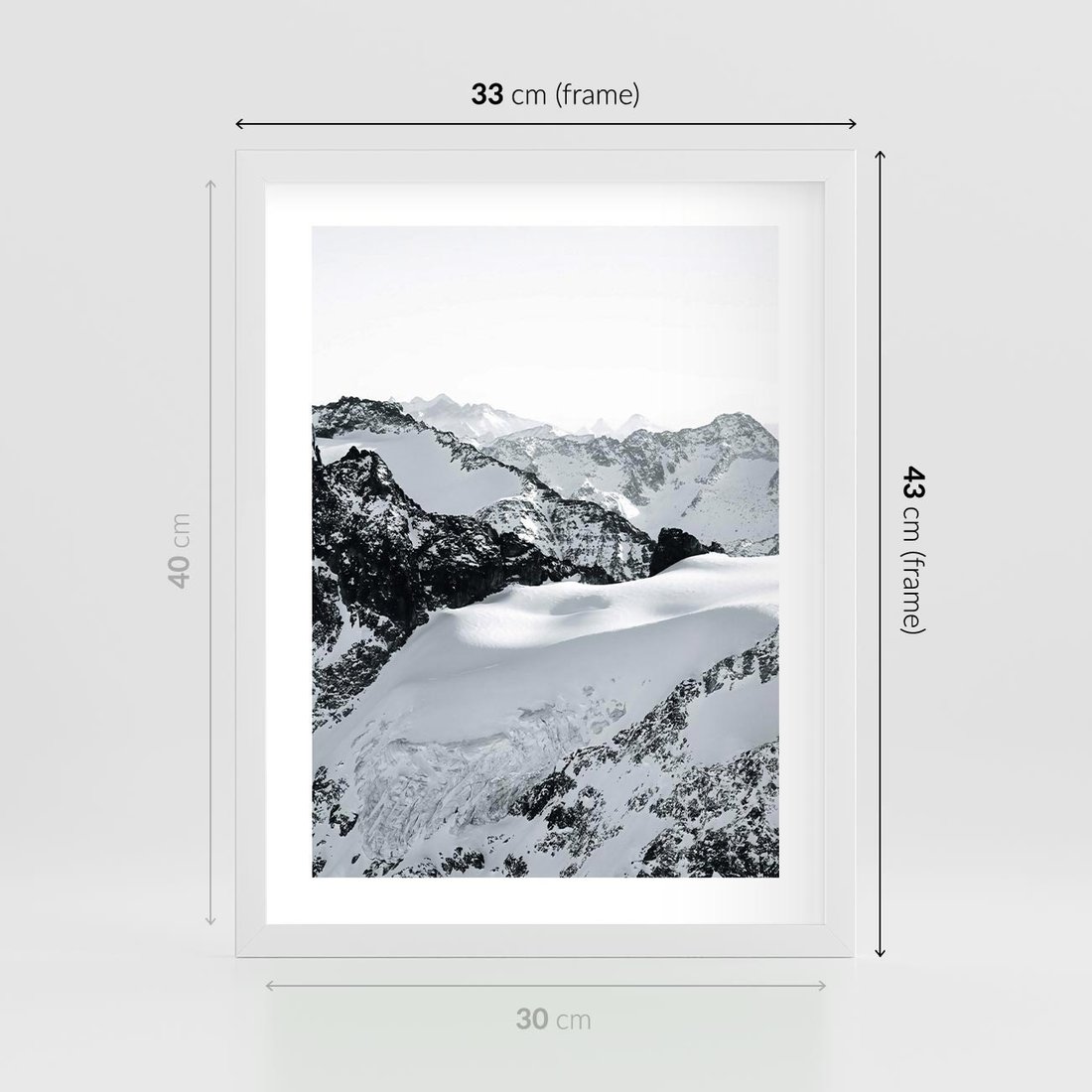 Plakat w ramie 30x40 - Biały Zimowy Pejzaż - góry w zimie, ośnieżone wysokie szczyty - rama biała