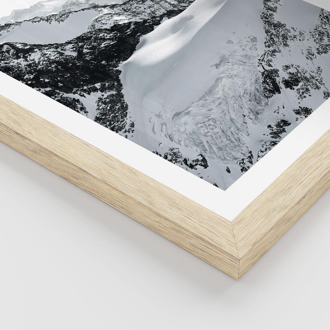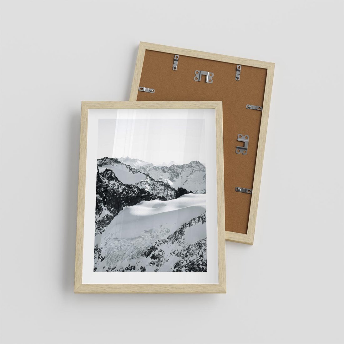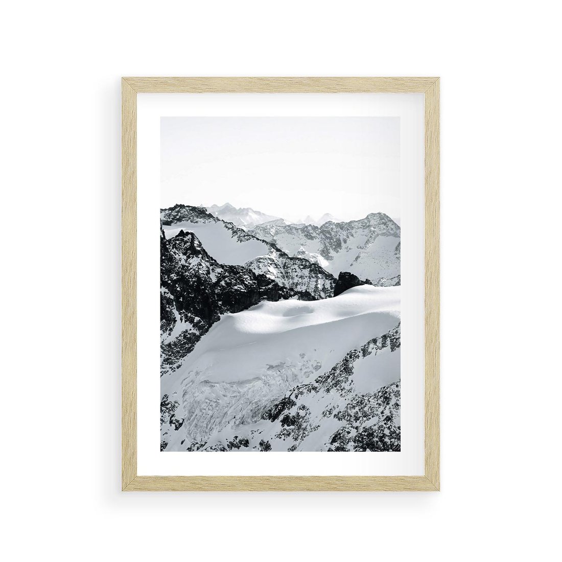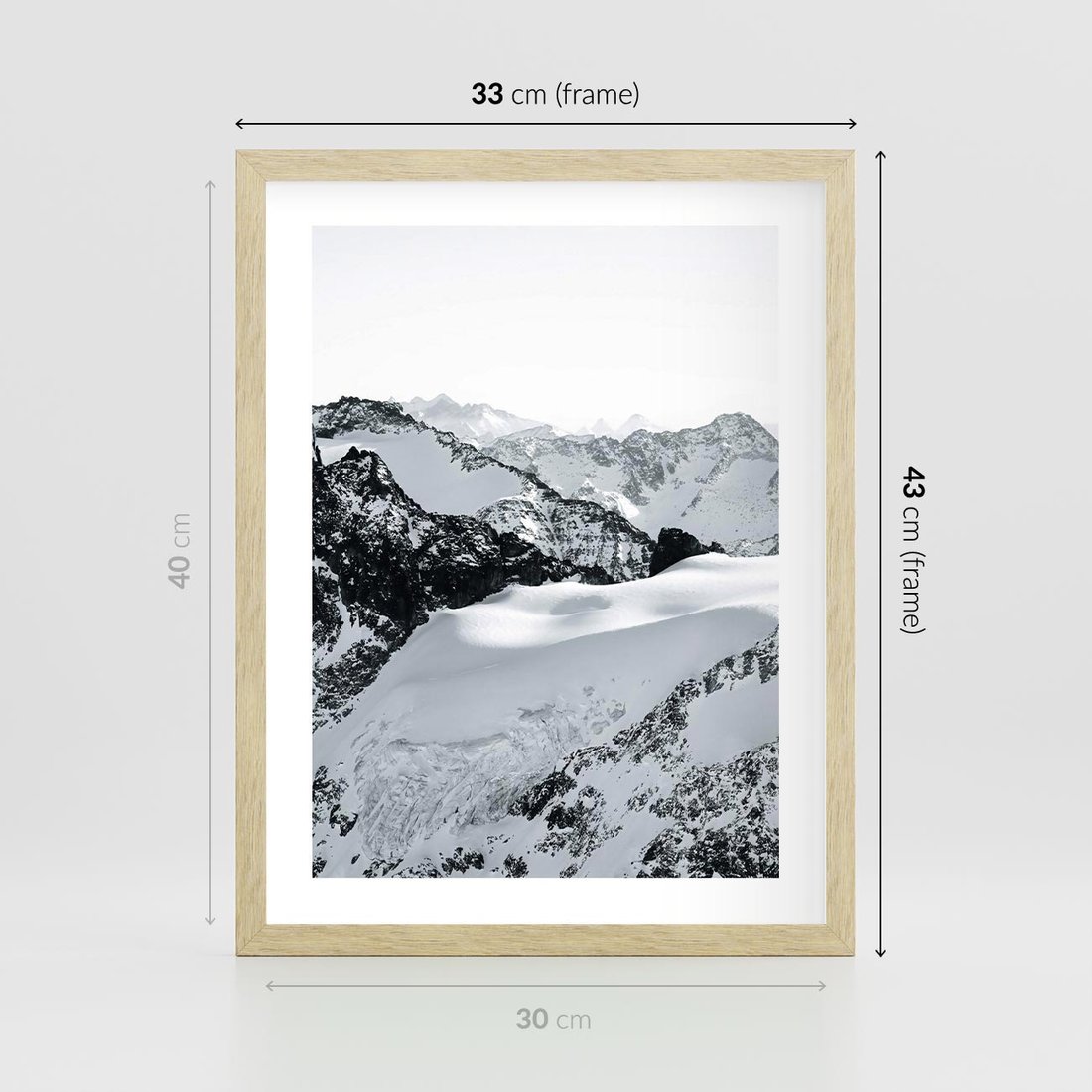 Plakat w ramie 30x40 - Biały Zimowy Pejzaż - góry w zimie, ośnieżone wysokie szczyty - rama drewno