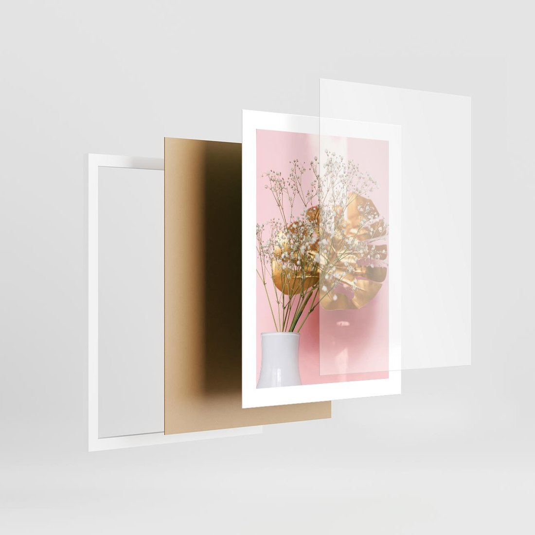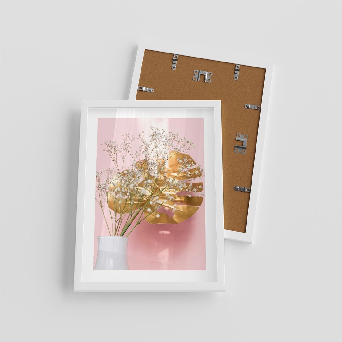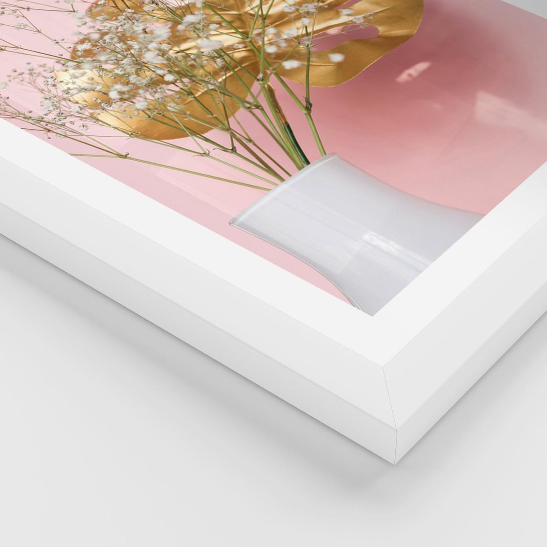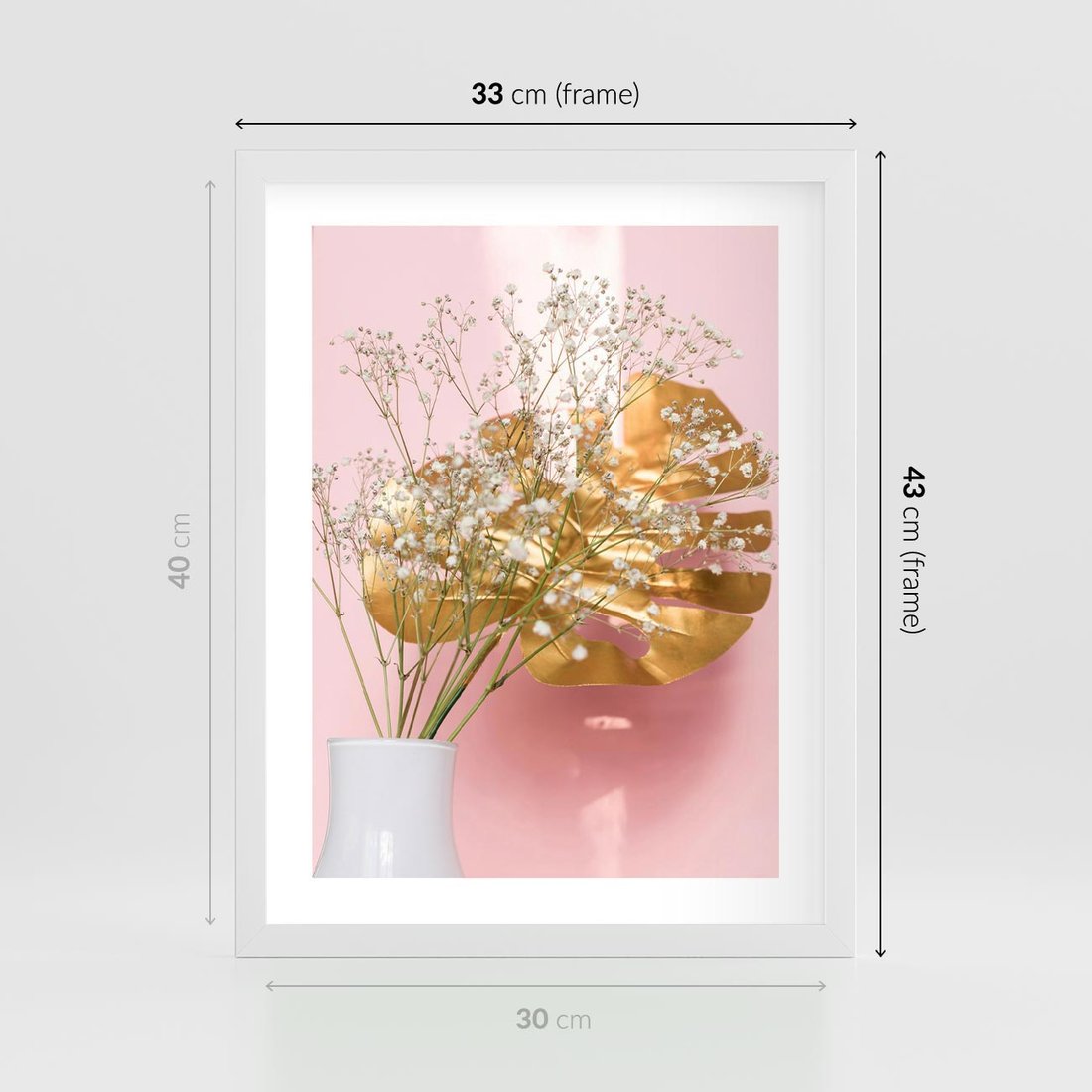 Plakat w ramie 30x40 - Blask Natury - złote, liście - rama biała