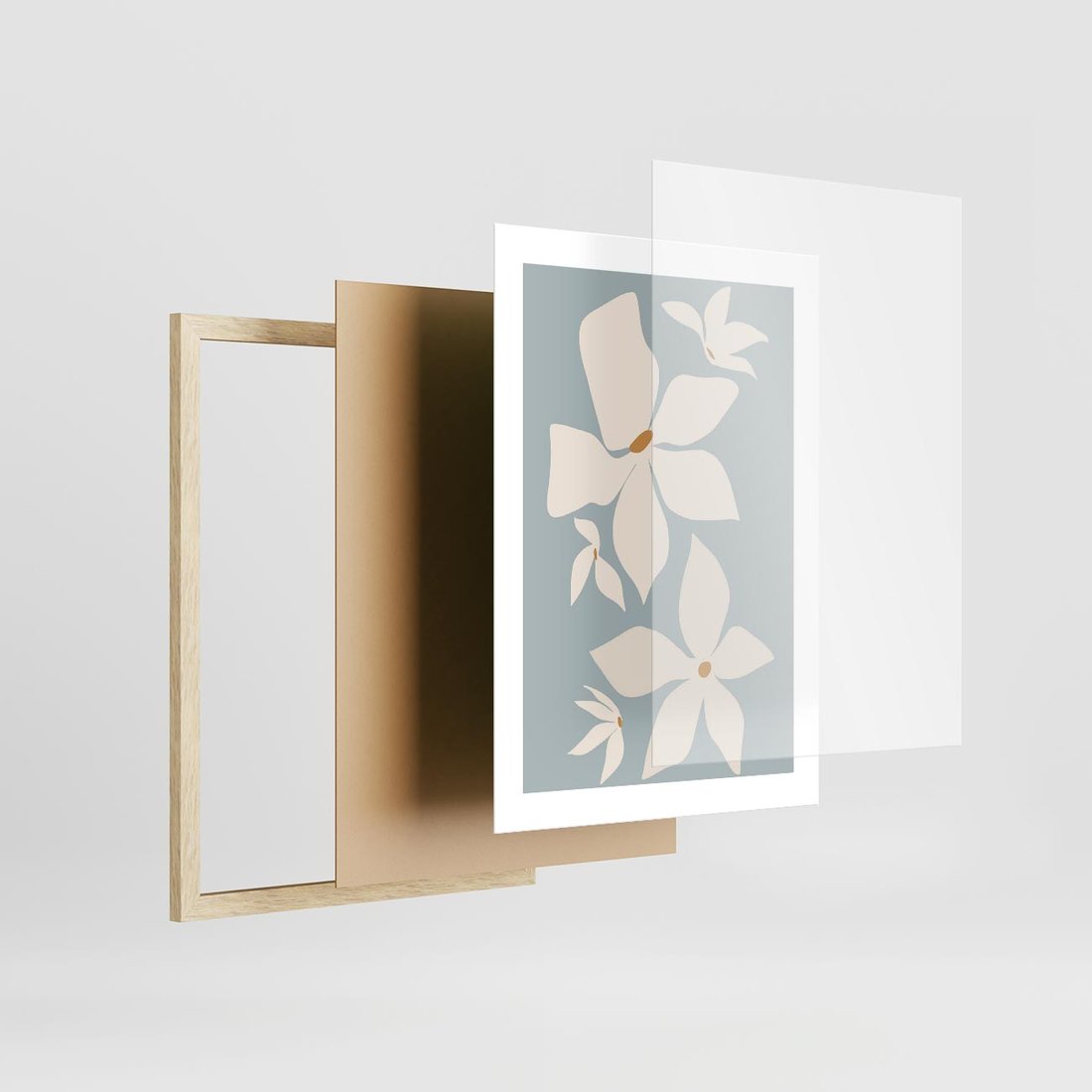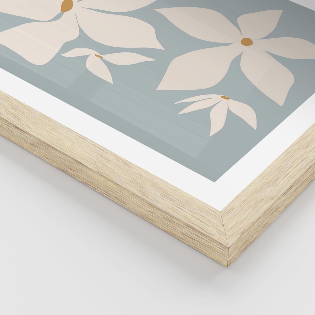 Plakat w ramie 30x40 - Błękit Kwiatów - kwiaty, nowoczesne i minimalistyczne - rama drewno