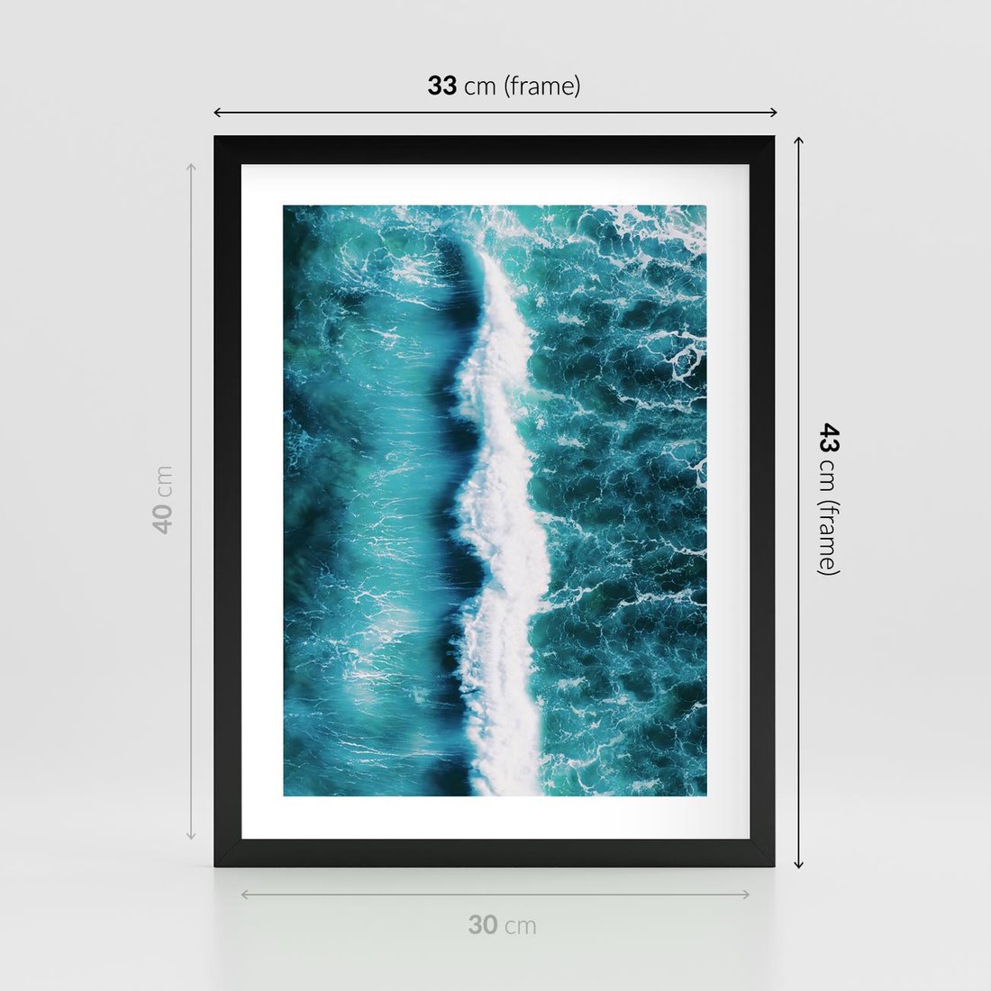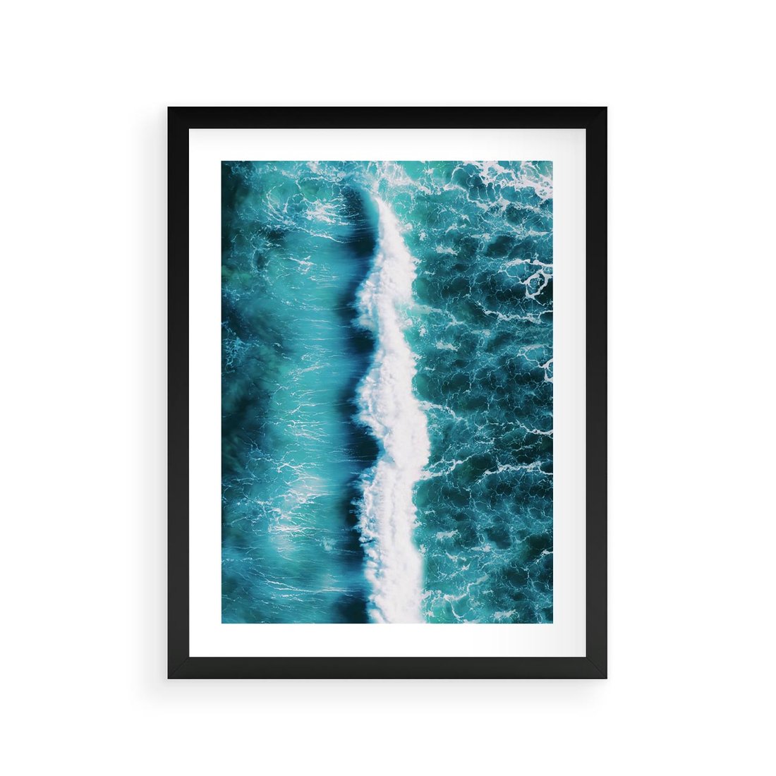 Plakat w ramie 30x40 - Błękitna Siła Oceanu - fale, ocean - rama czarna