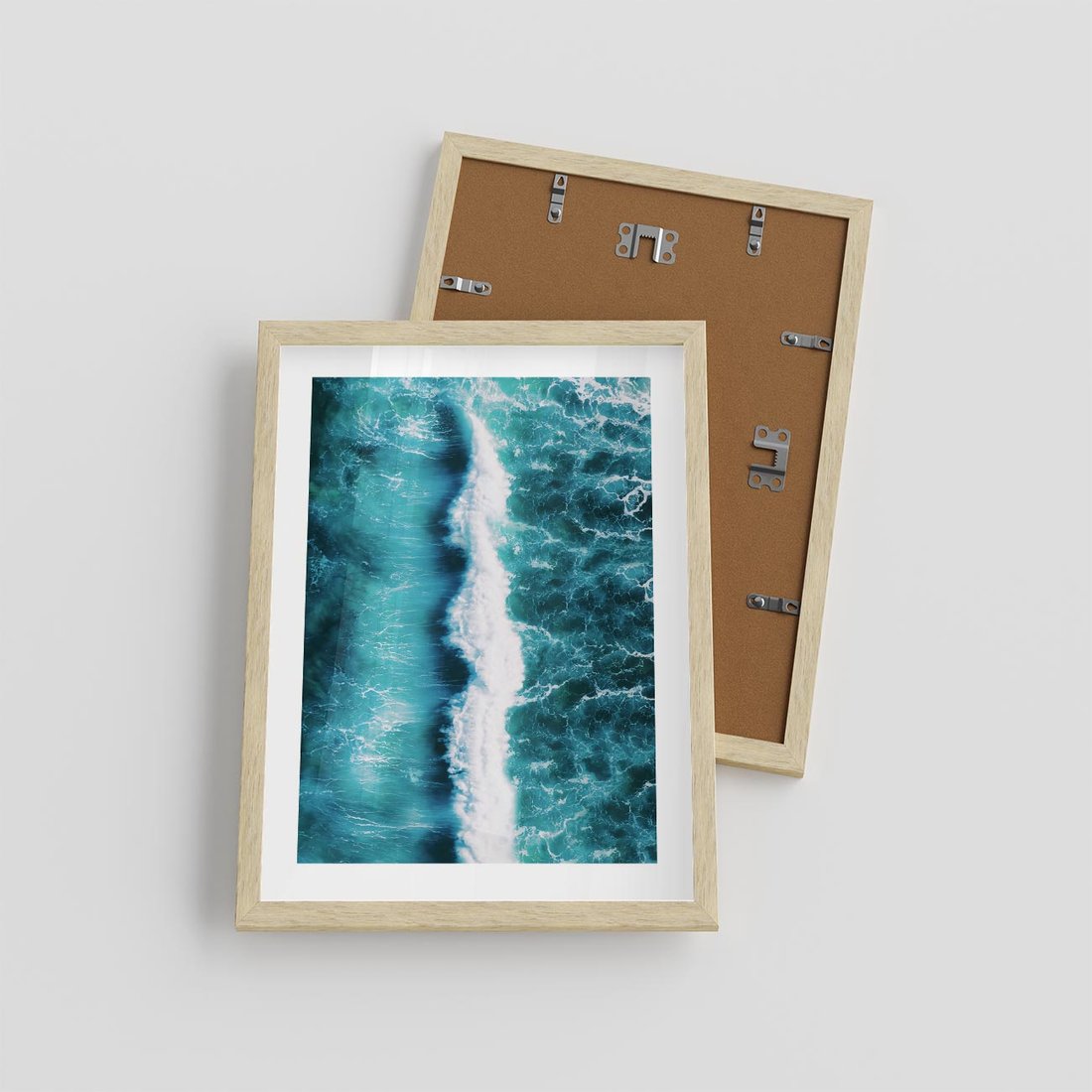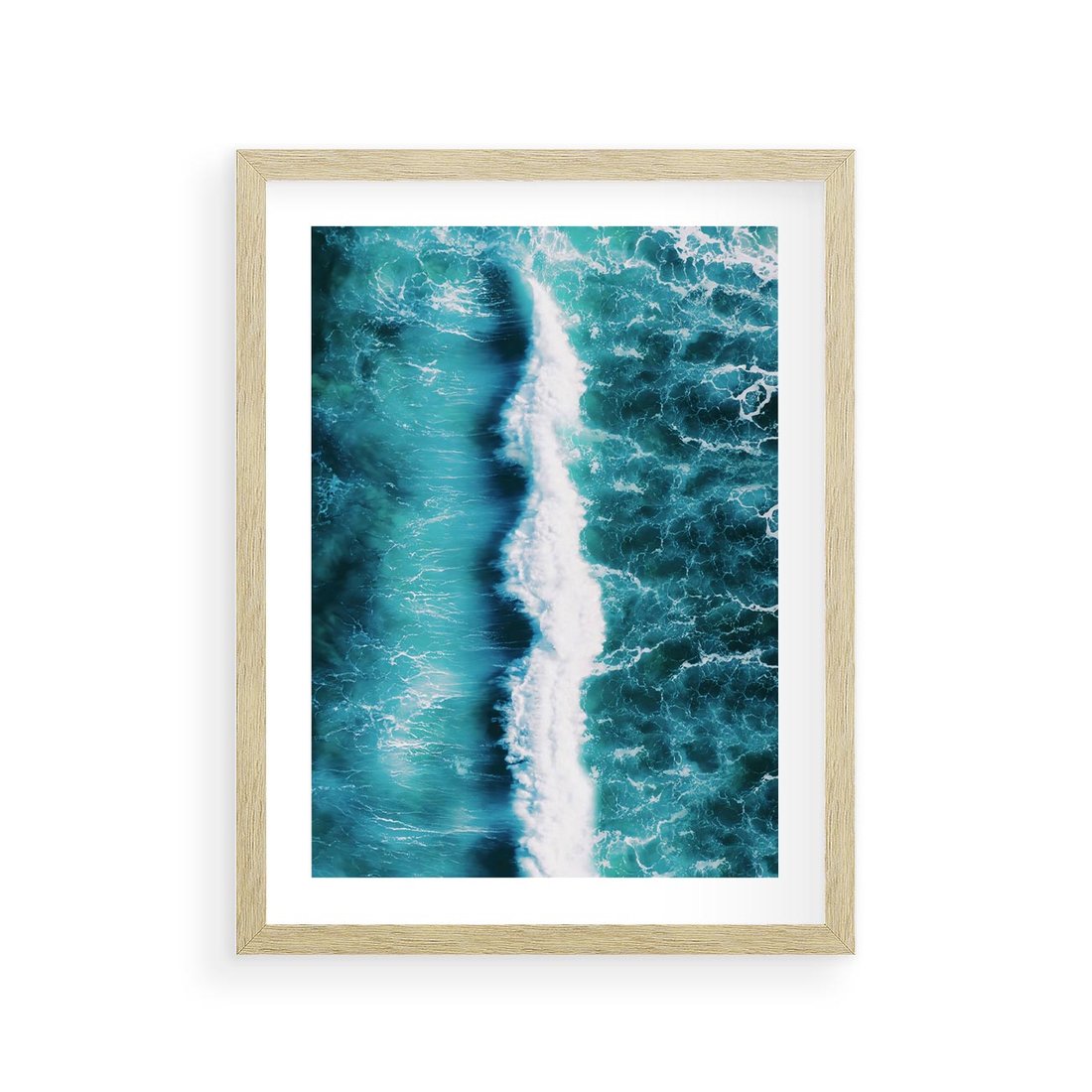 Plakat w ramie 30x40 - Błękitna Siła Oceanu - fale, ocean - rama drewno