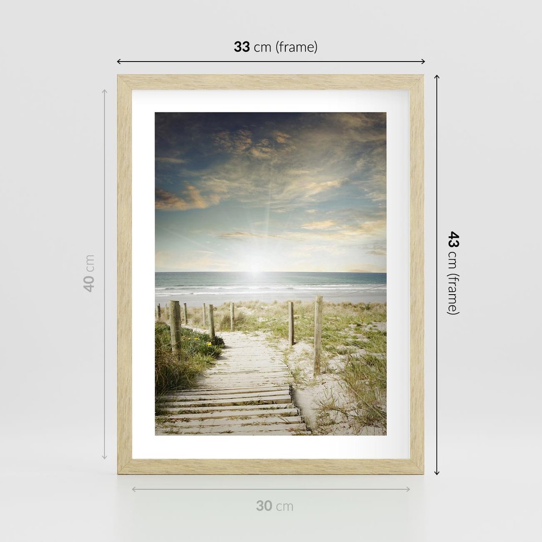 - Plakat w ramie 30x40 - Błękitne morze na pomostach