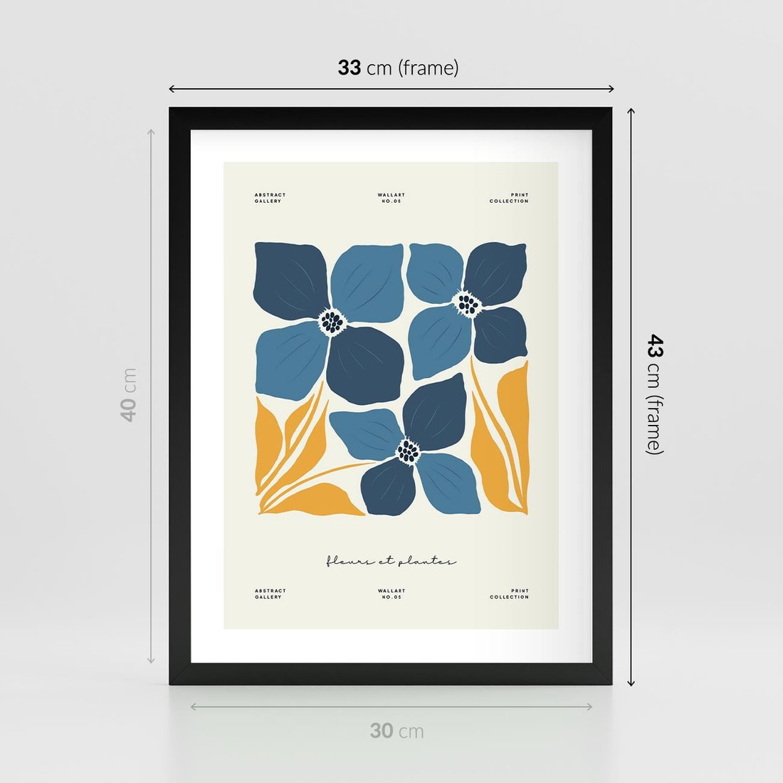 Plakat w ramie 30x40 - Błękitne Nowości - niebieskie kwiaty, nowoczesna sztuka - rama czarna