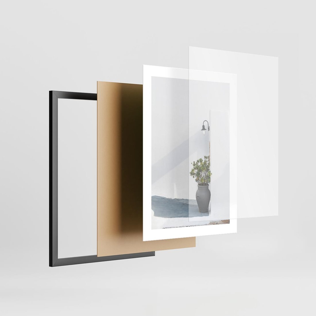 Plakat w ramie 30x40 - Błękitne wybrzeże - Santorini, Grecja - rama czarna