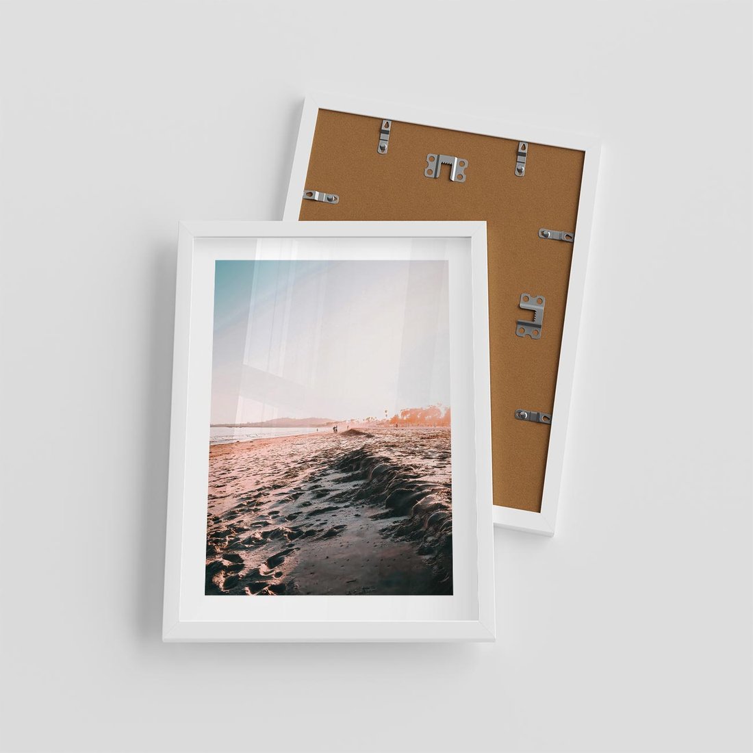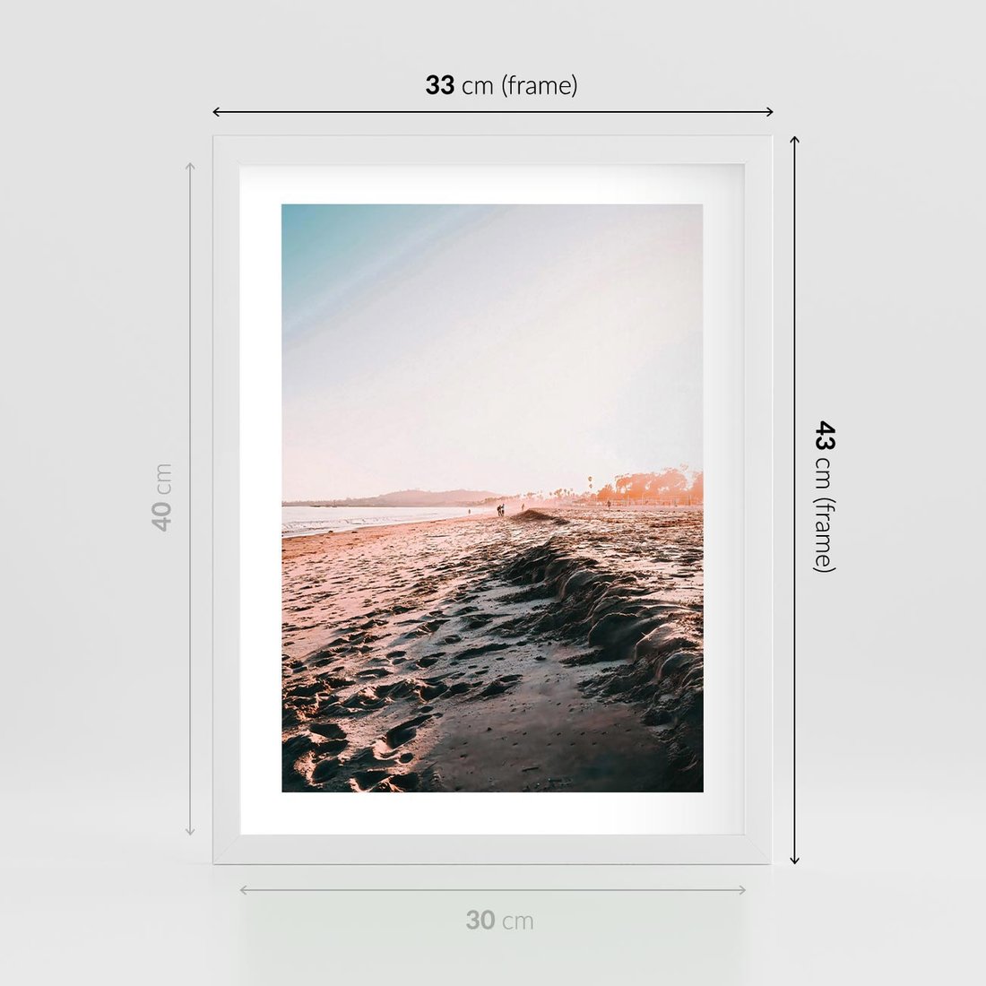 Plakat w ramie 30x40 - Błogie Chwile na Plaży - plaża, zachód słońca wakacje - rama biała