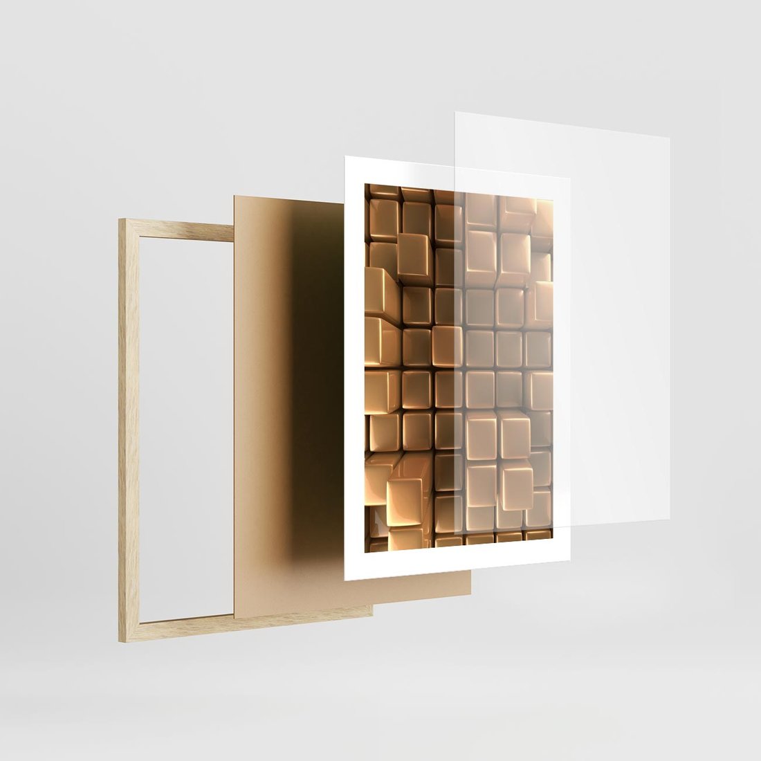 Ta wykwintna kompozycja złota w trójwymiarze wniesie do Twojego wnętrza błyszczącą elegancję i luksus. Odkryj głębię i intensywność złotych detali, które przyciągną wzrok. Dodaj ekskluzywnego nastroju i wyrazistości do swojego wnętrza.