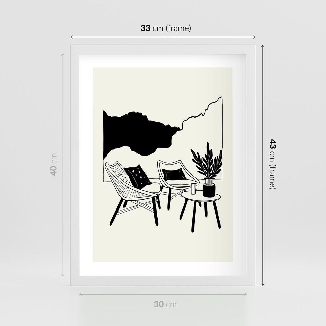 Plakat w ramie 30x40 - Boho Elegancja - boho wnętrze, salon - rama biała