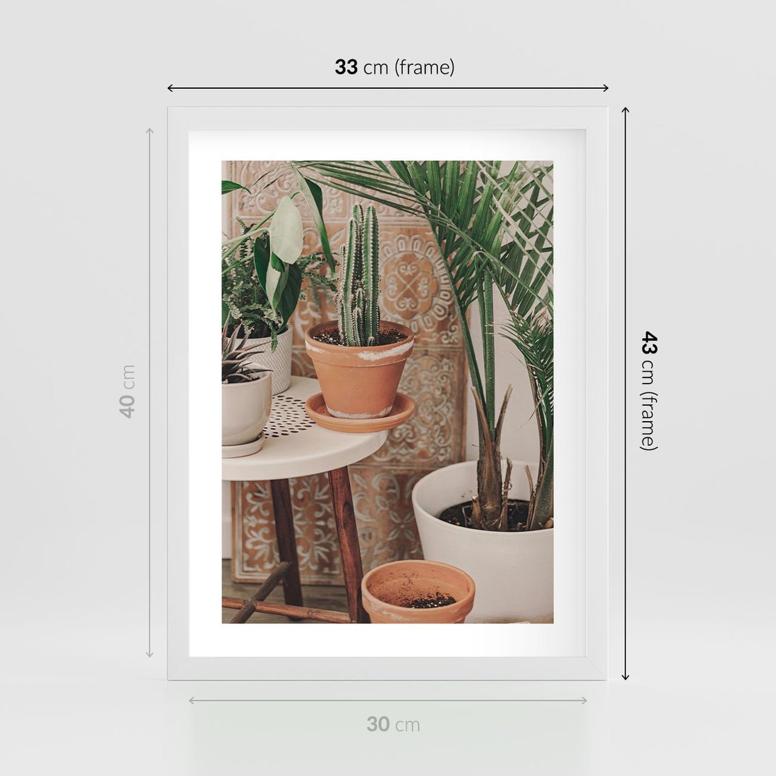- Plakat w ramie 30x40 - Boho Oaza: Kaktusy w Doniczkach