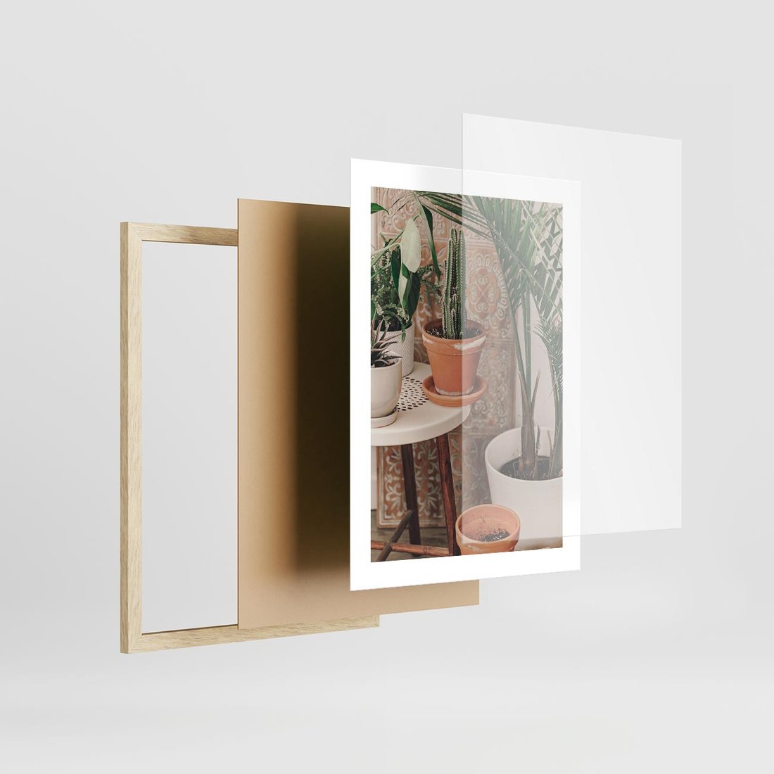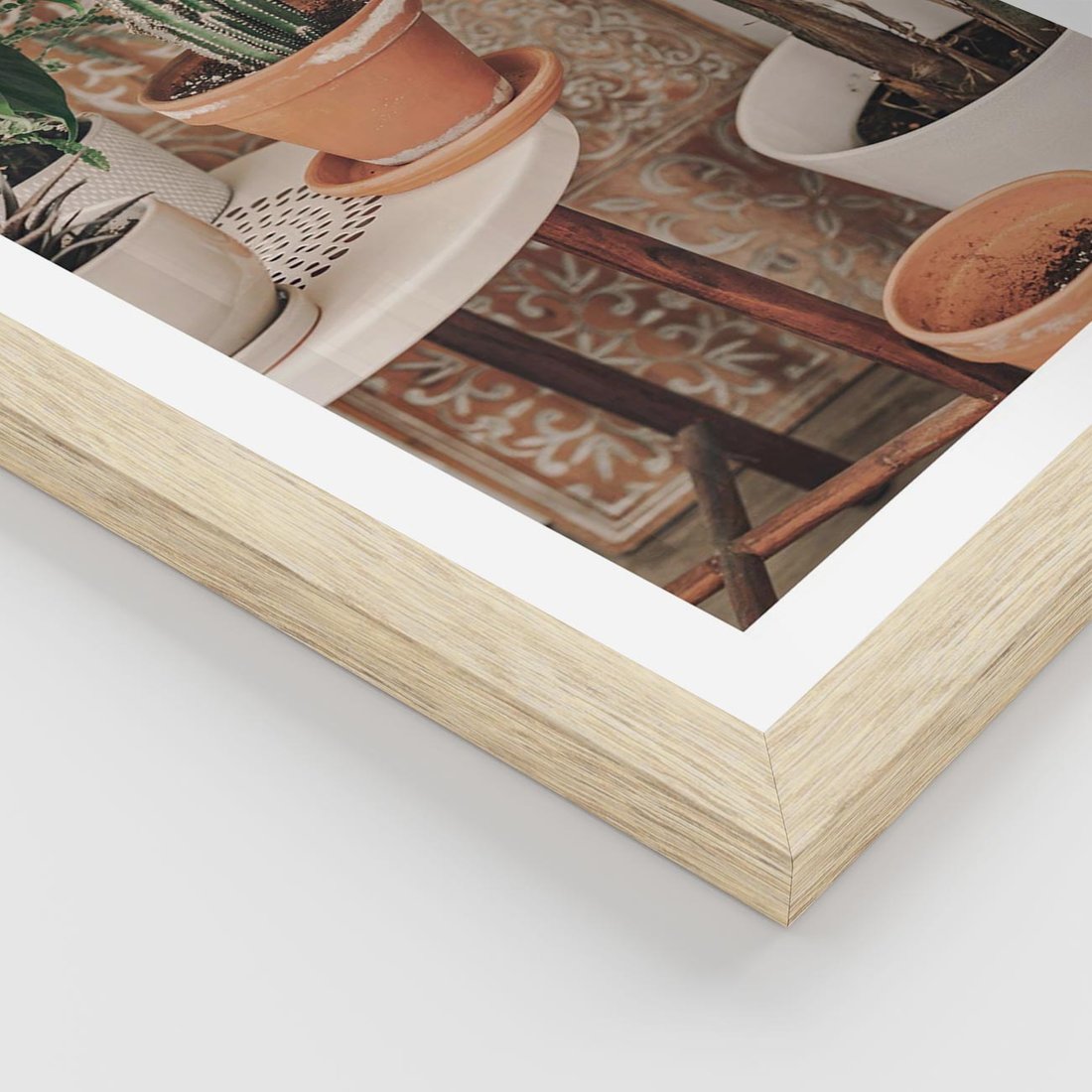 Plakat w ramie 30x40 - Boho Oaza: Kaktusy w Doniczkach - rośliny kaktusy w doniczkach, boho wnętrze - rama drewno