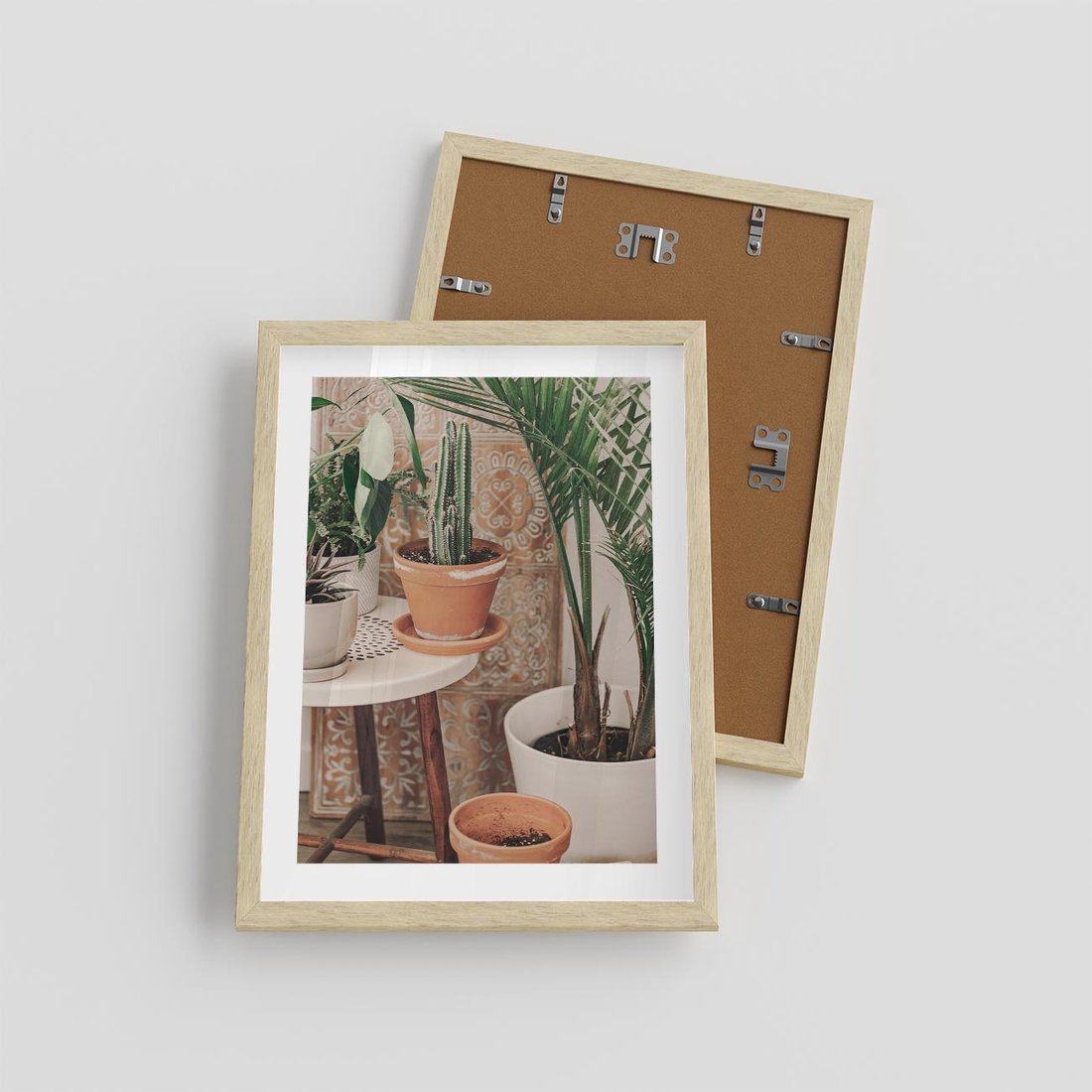 - Plakat w ramie 30x40 - Boho Oaza: Kaktusy w Doniczkach