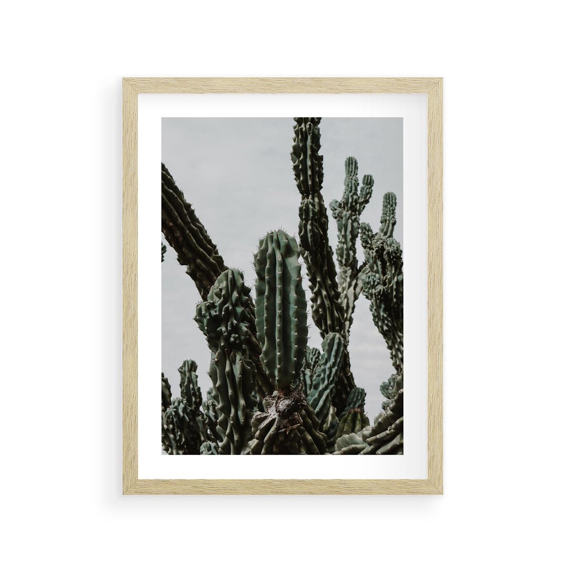 Plakat w ramie 30x40 - Boho oaza wśród kaktusów - kaktusy, pustynia - rama drewno