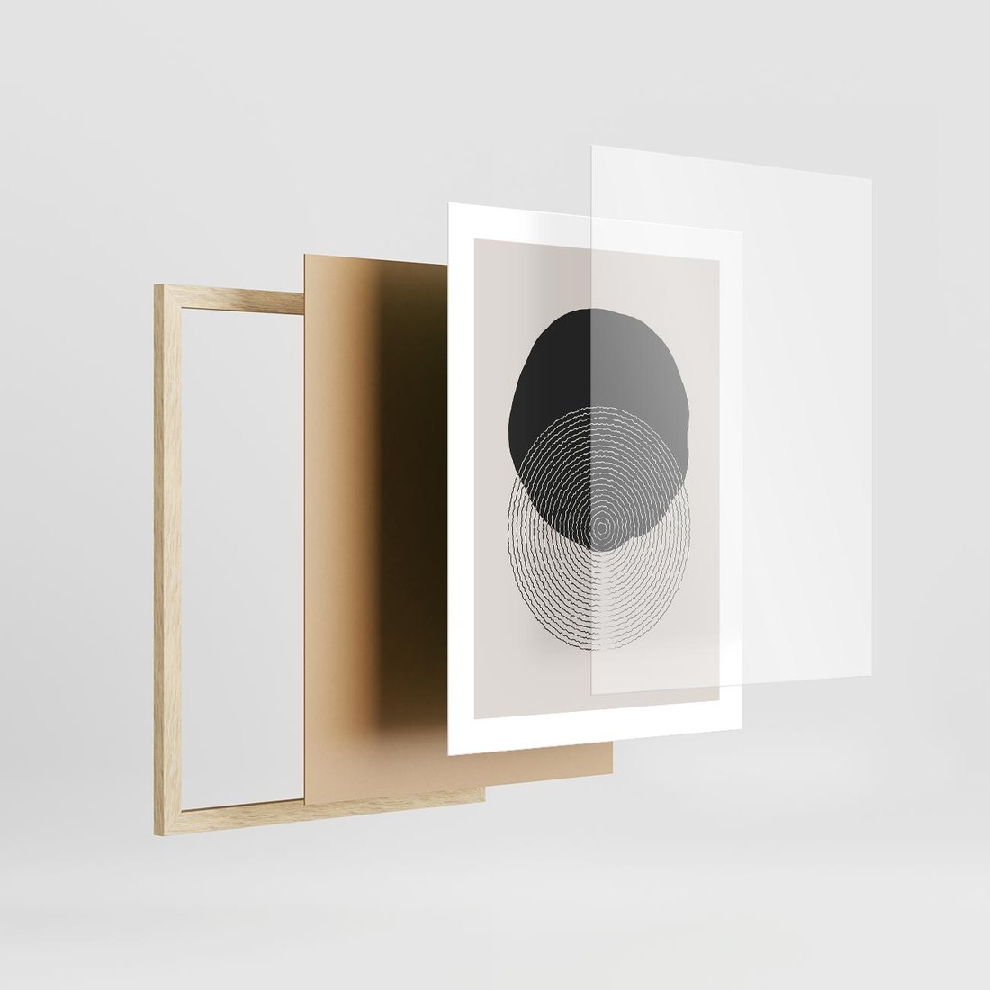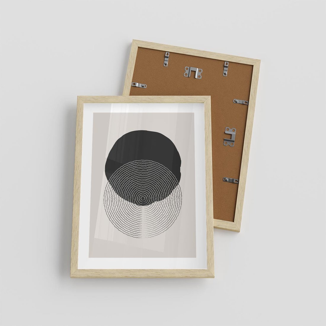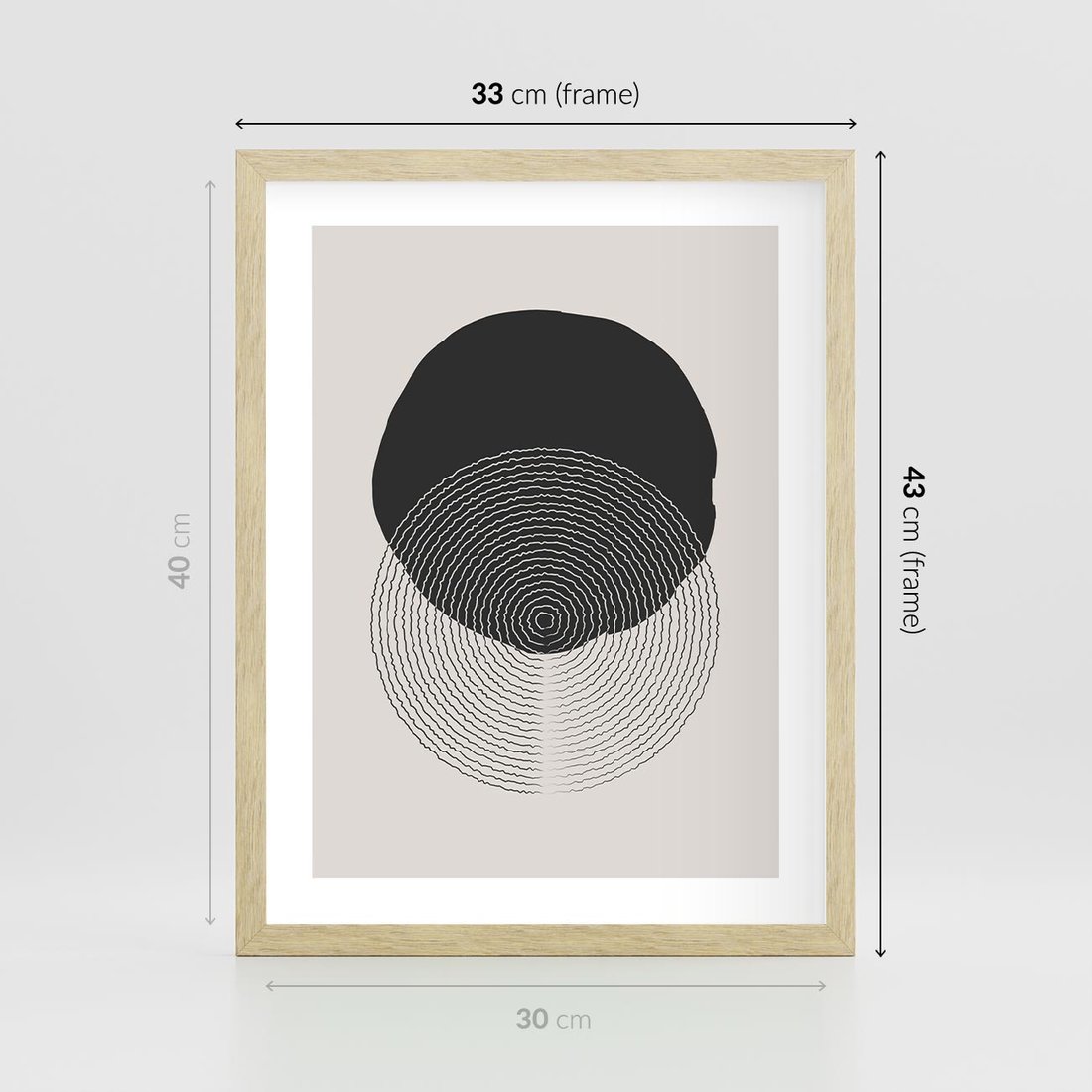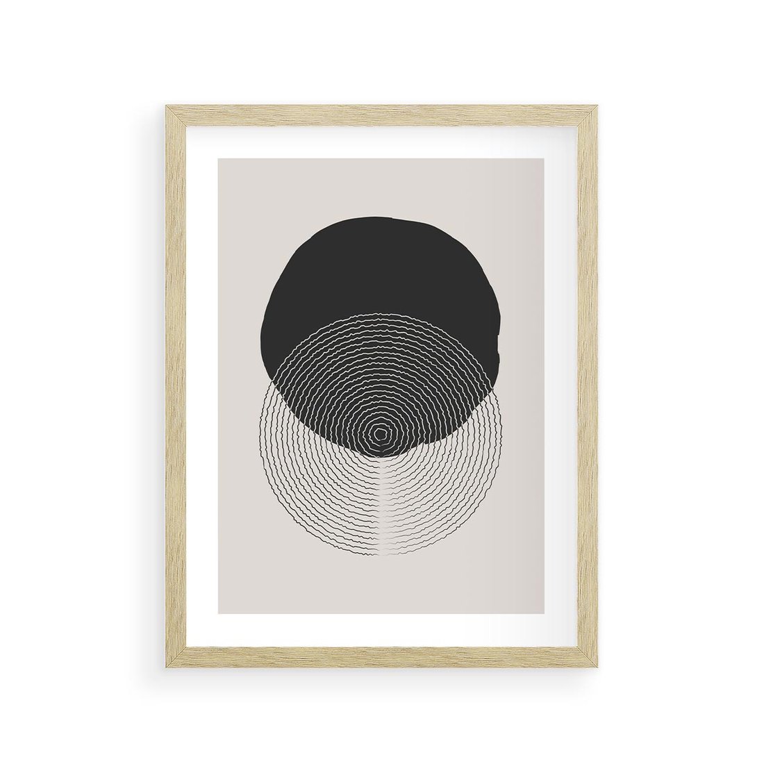 Plakat w ramie 30x40 - Boho Przenikanie Uroku - abstrakcyjna kompozycja, okręgi - rama drewno