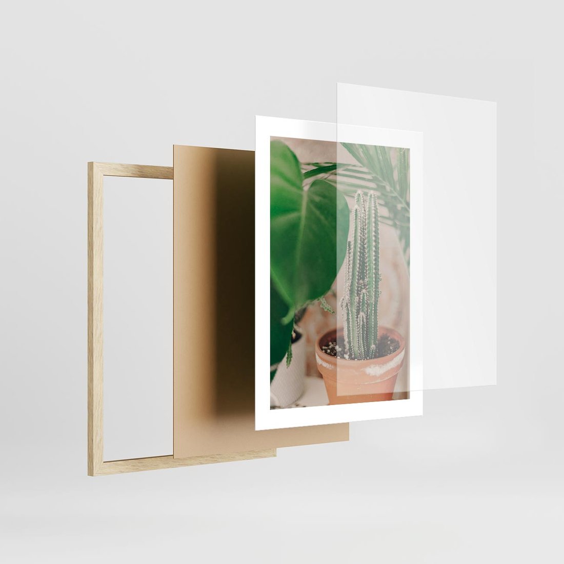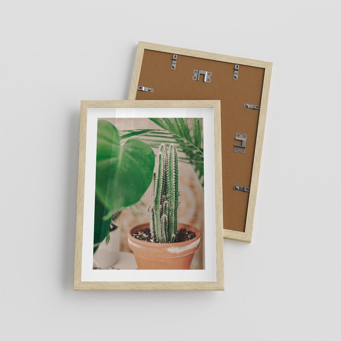 Plakat w ramie 30x40 - Boho Urok - kaktus w doniczce, gliniana doniczka - rama drewno