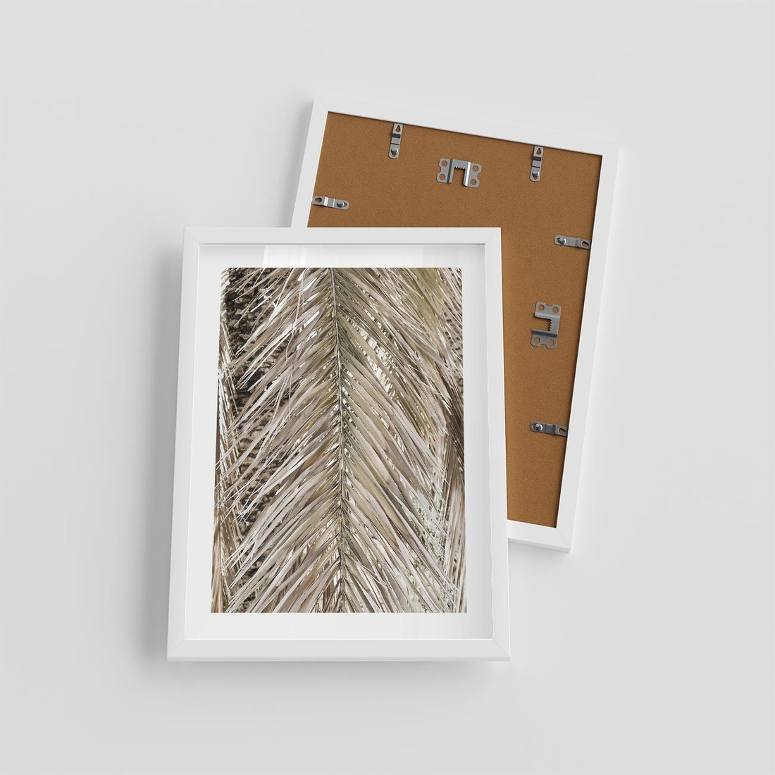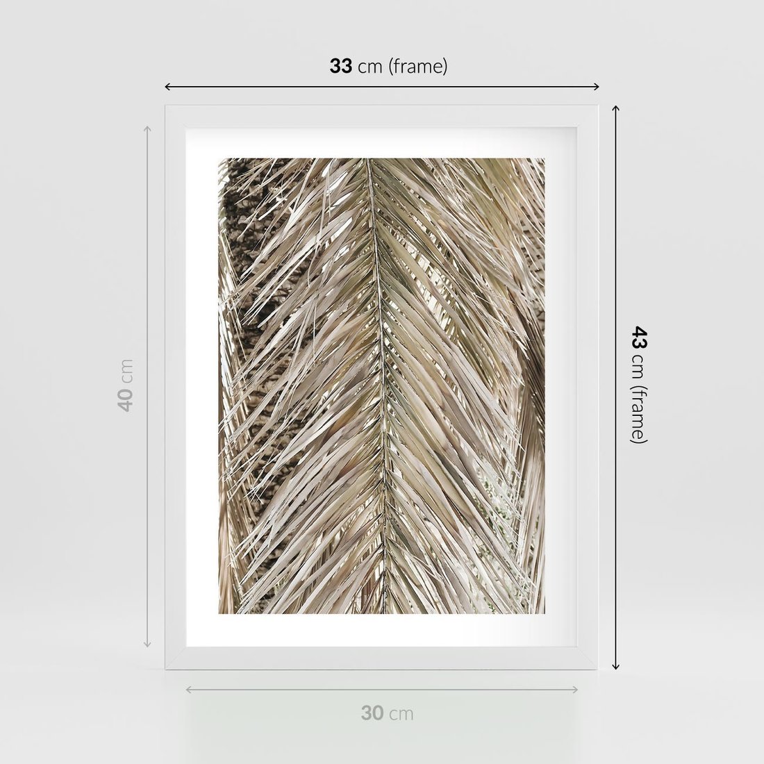 Plakat w ramie 30x40 - Boho Urok Palmy: Zbliżenie Natury - sucha palma, zbliżenie - rama biała