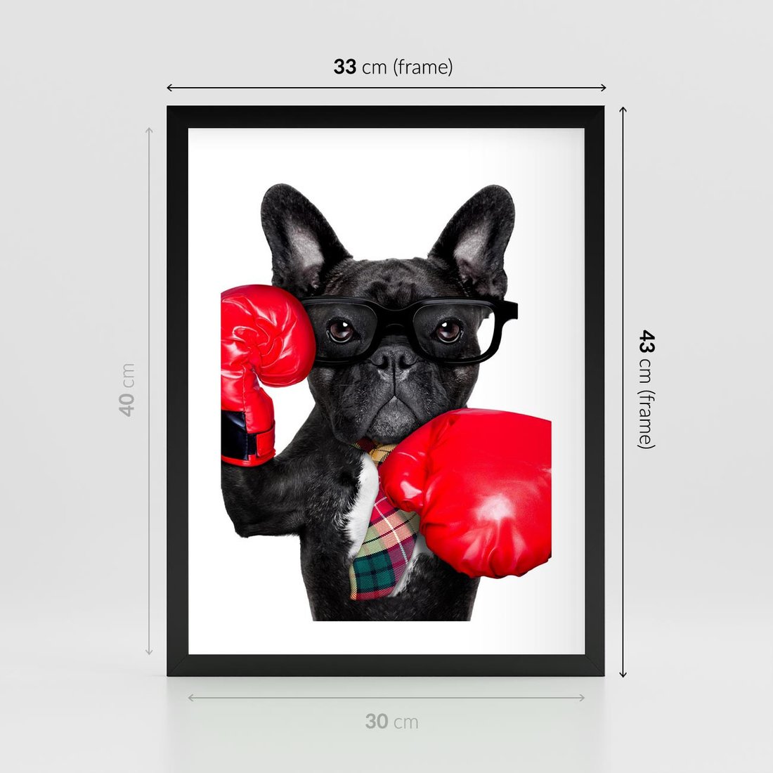 - Plakat w ramie 30x40 - Boksujący mops - pies