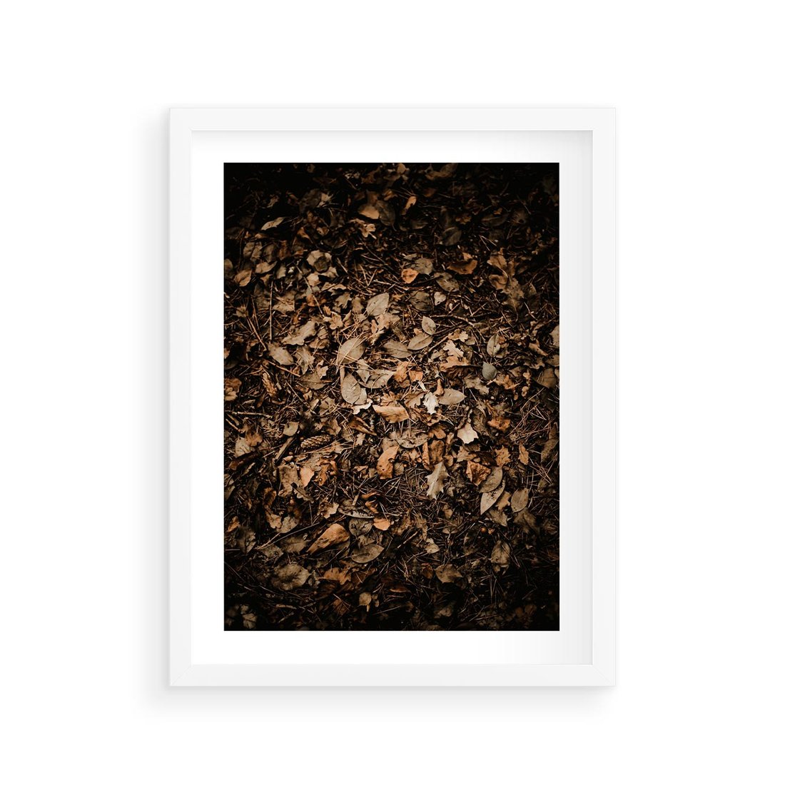 Plakat w ramie 30x40 - Brązowe Liście w Scenerii - suche liście jesień brąz - rama biała