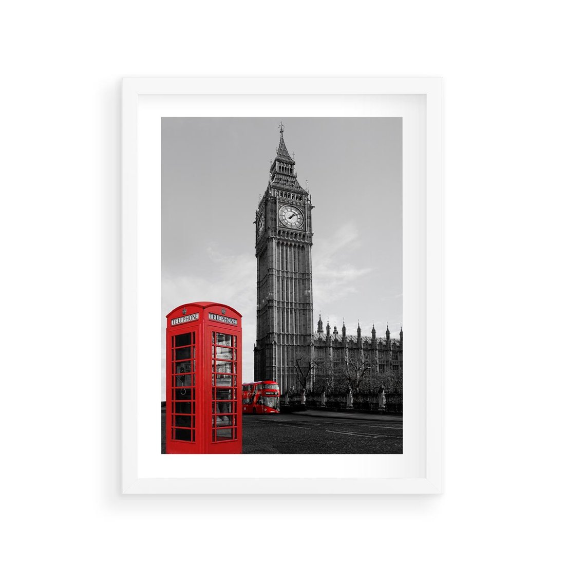 - Plakat w ramie 30x40 - Budka telefoniczna przed Big Benem