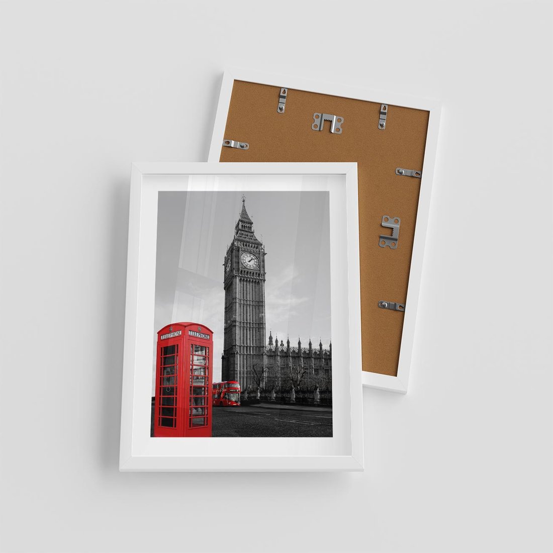 Plakat w ramie 30x40 - Budka telefoniczna przed Big Benem - budka, Londyn - rama biała