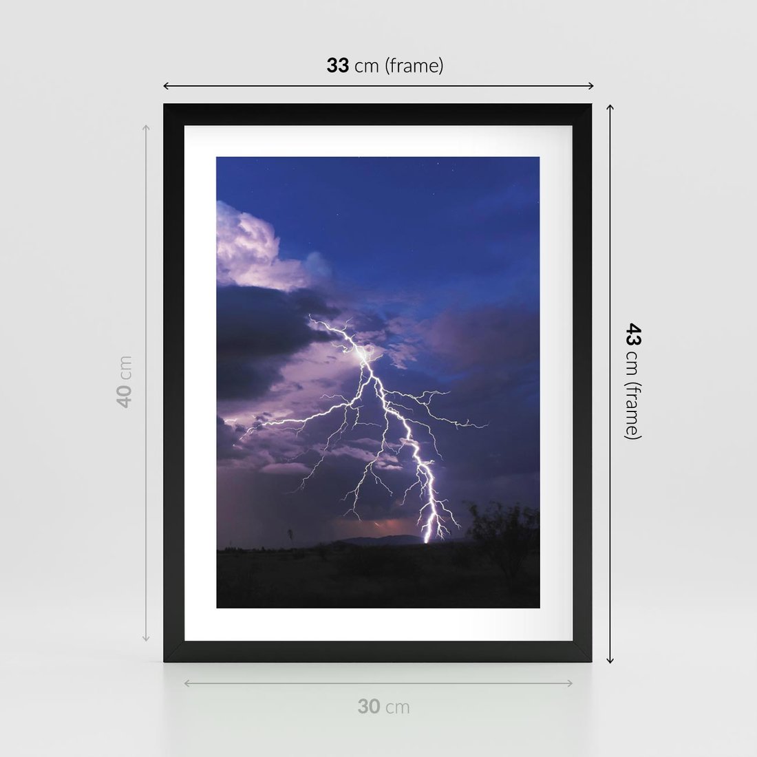 - Plakat w ramie 30x40 - Burza z błyskawicami nad horyzontem