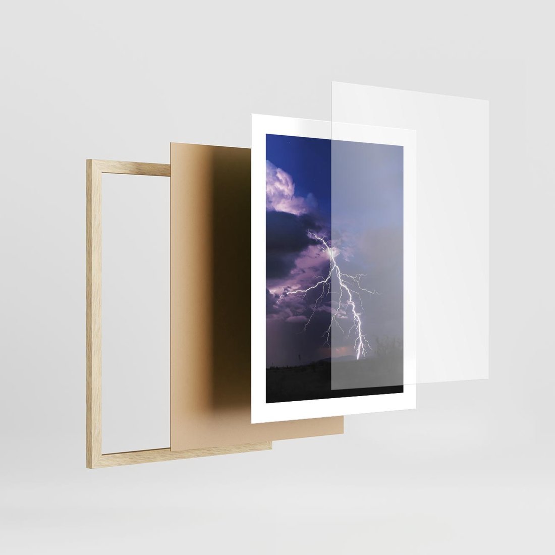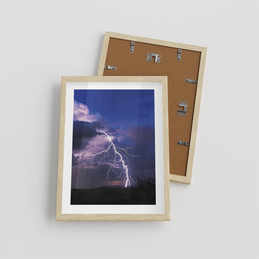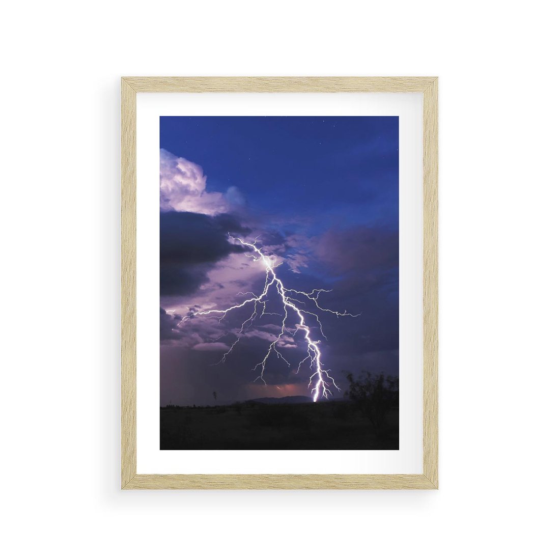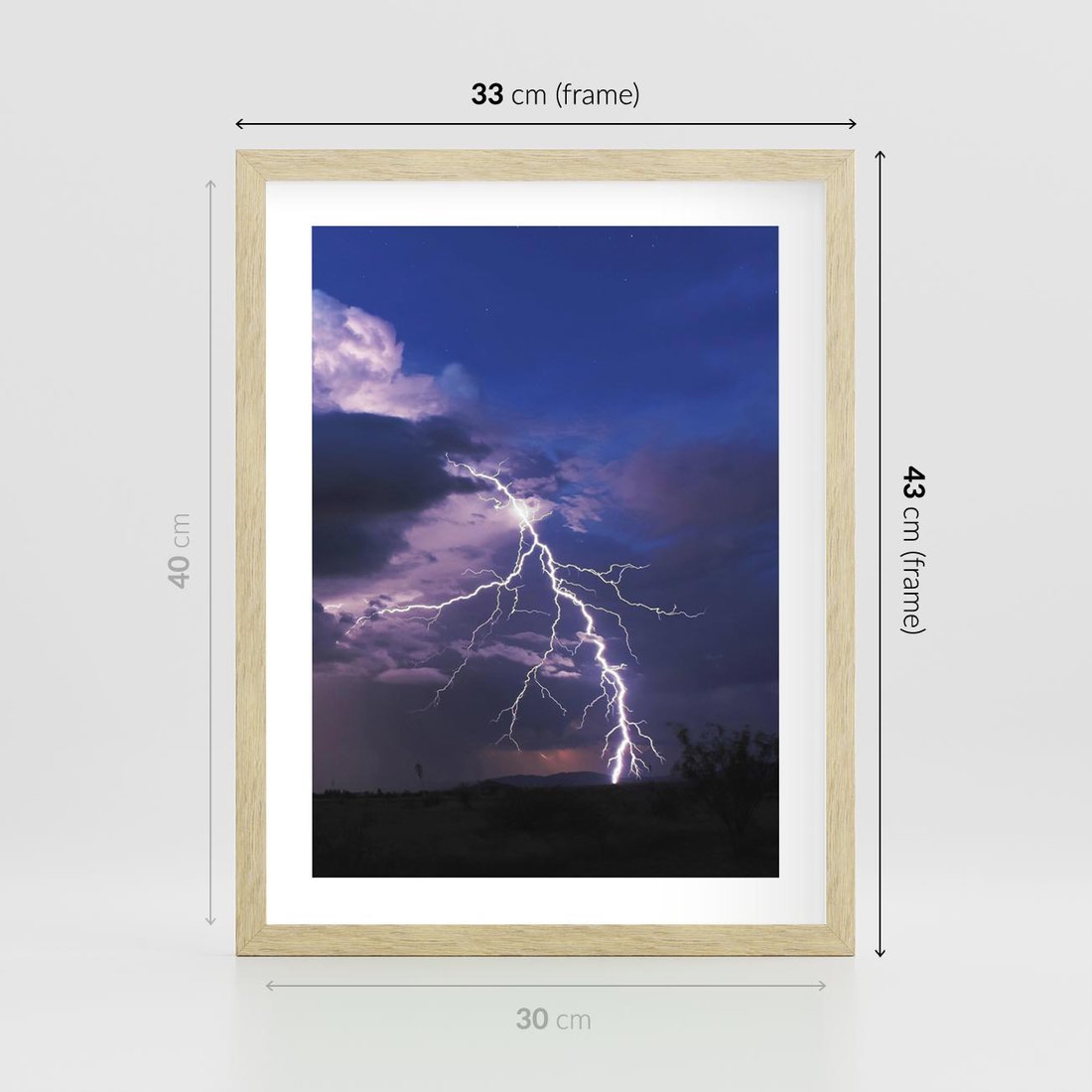 Plakat w ramie 30x40 - Burza z błyskawicami nad horyzontem - burza, błyskawica - rama drewno