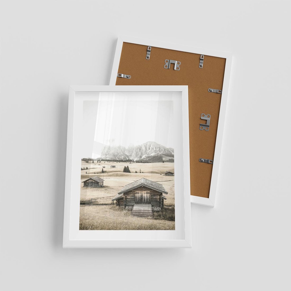 Plakat w ramie 30x40 - Chatka w Górskiej Sepii - domek w górach, chatka - rama biała