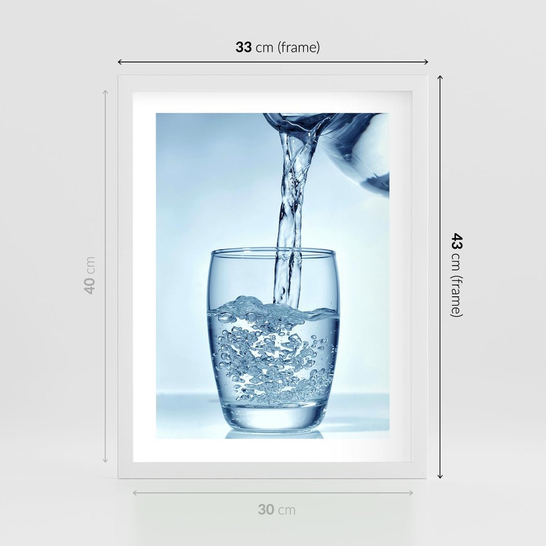 Plakat w ramie 30x40 - Chłodząca szklanka wody - szklanka, wody - rama biała