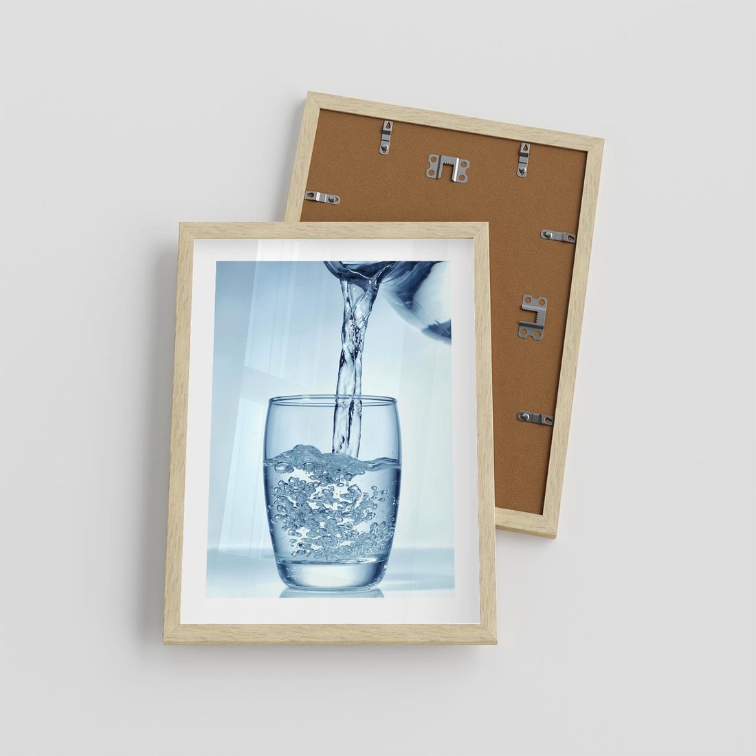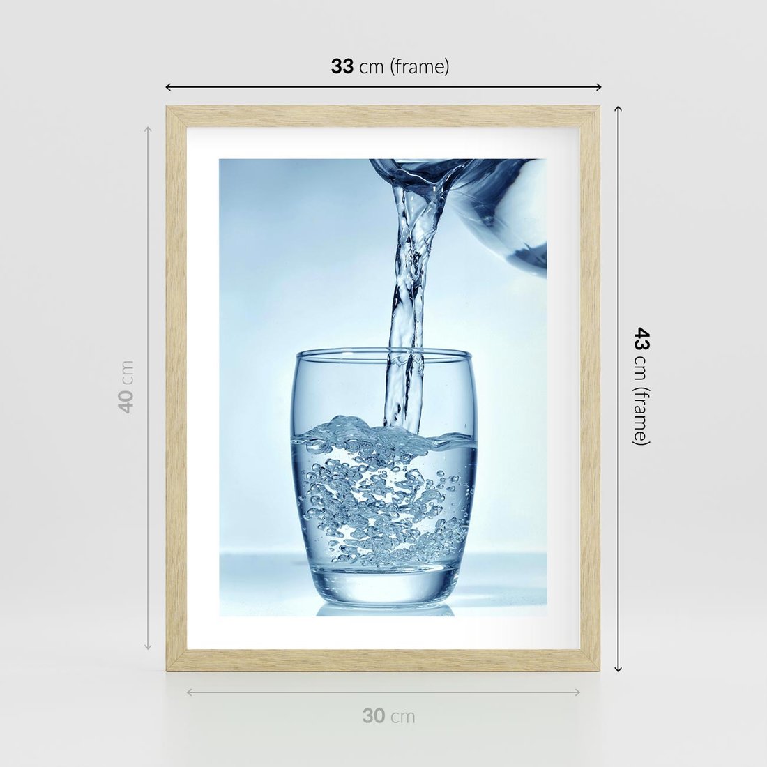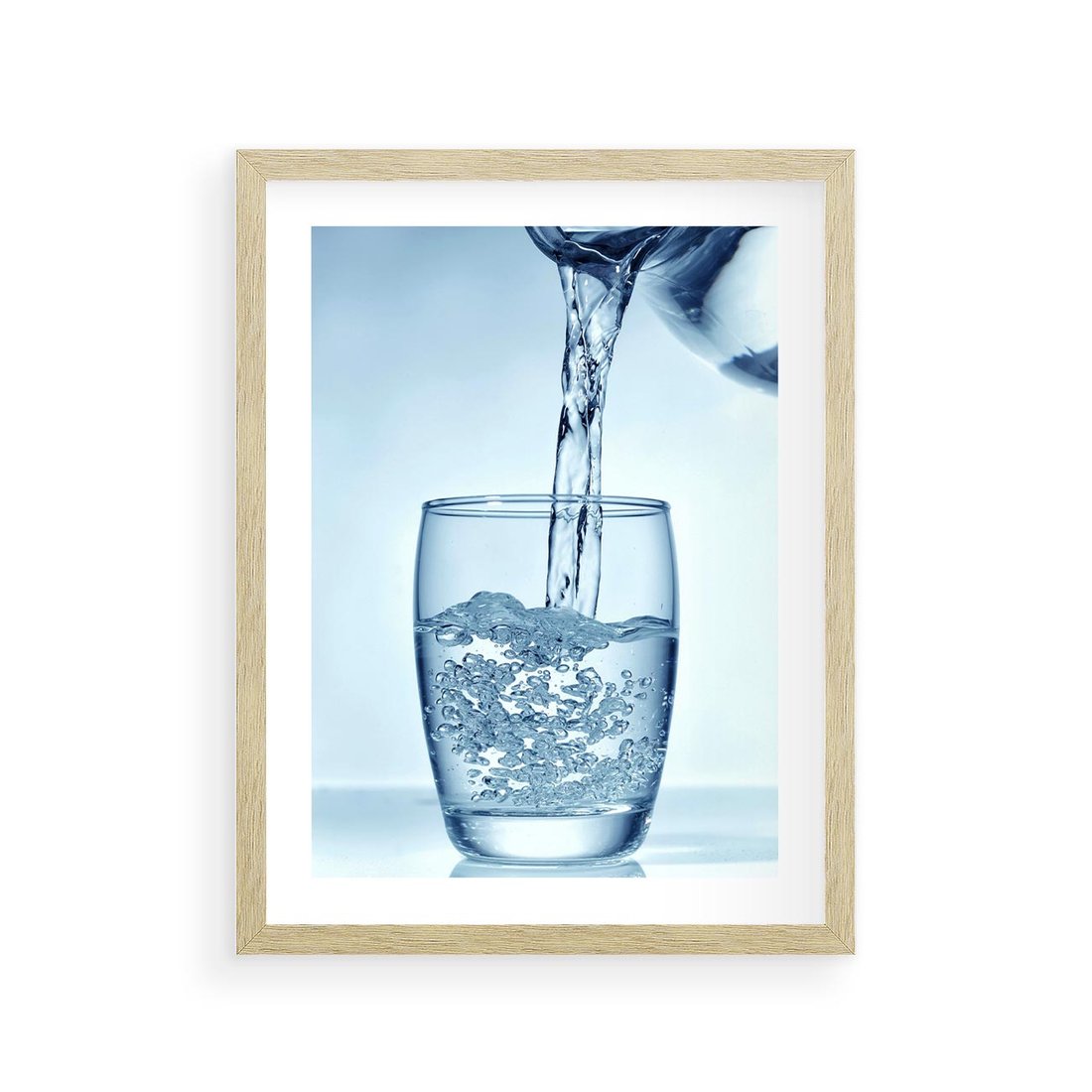 Plakat w ramie 30x40 - Chłodząca szklanka wody - szklanka, wody - rama drewno