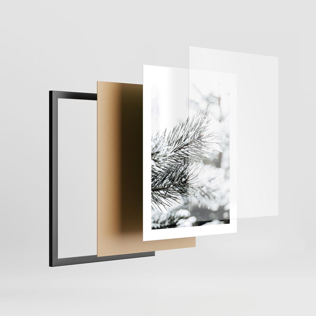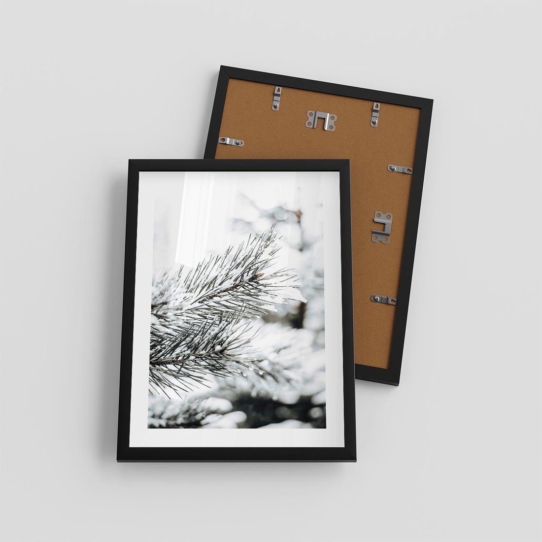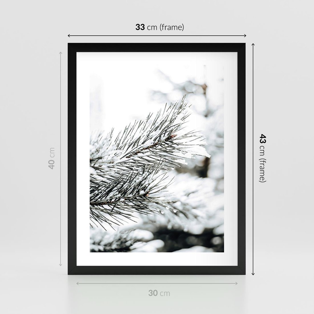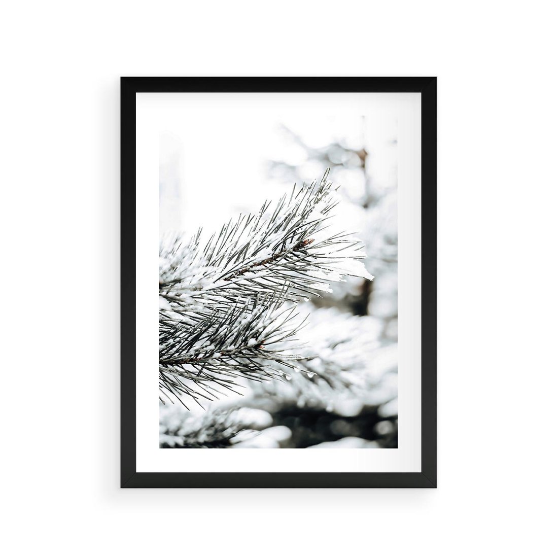 Plakat w ramie 30x40 - Chwila Zimowej Magii - iglasta gałązka, śnieg - rama czarna