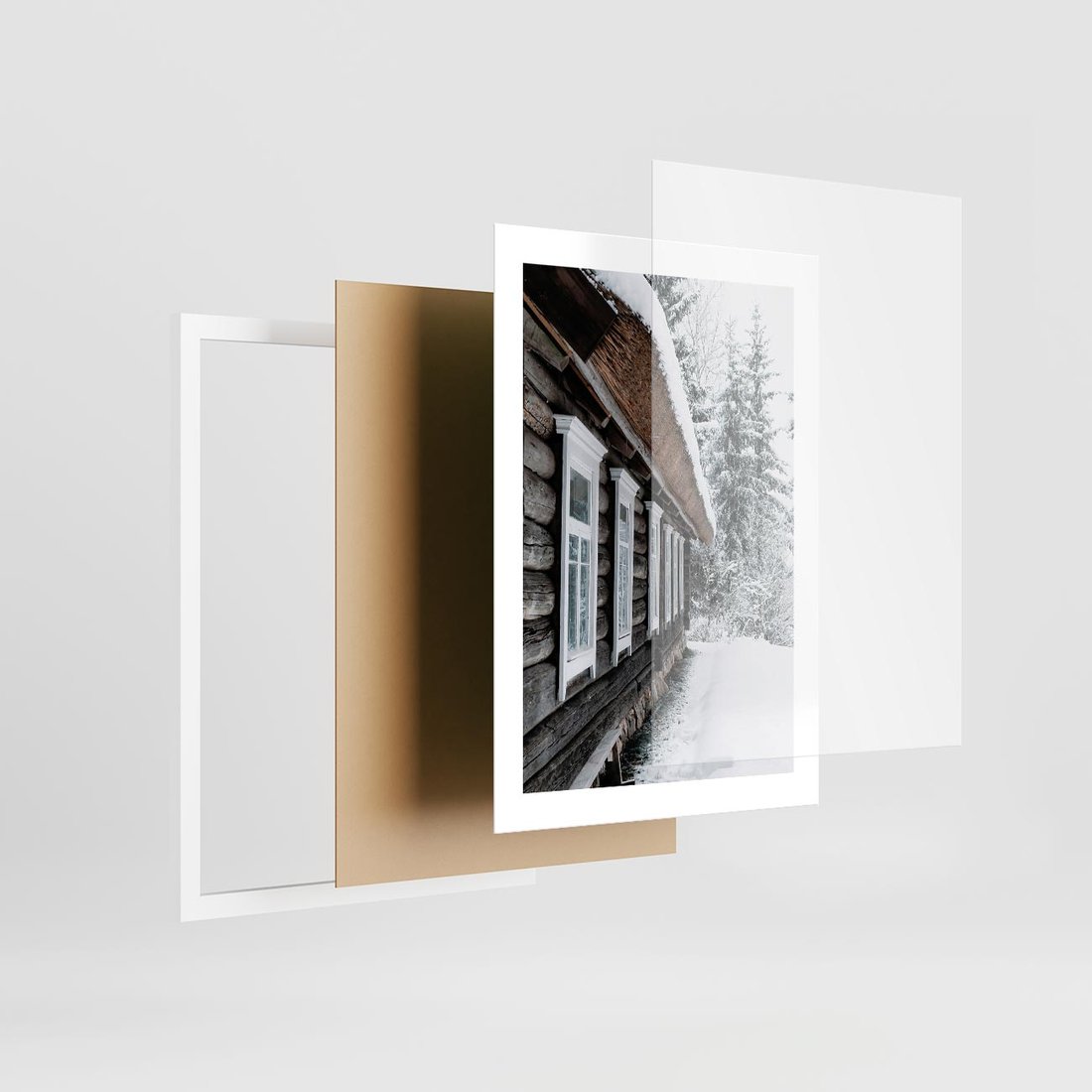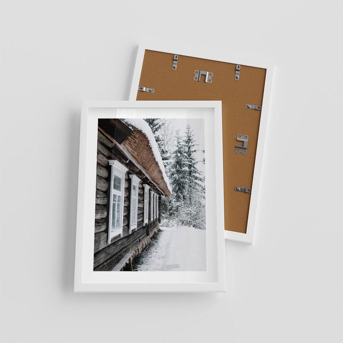 Plakat w ramie 30x40 - Cicha Zima - zima, domek w górach - rama biała