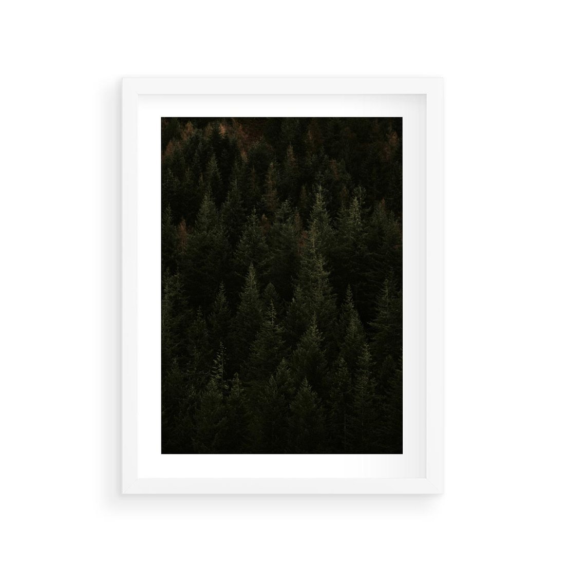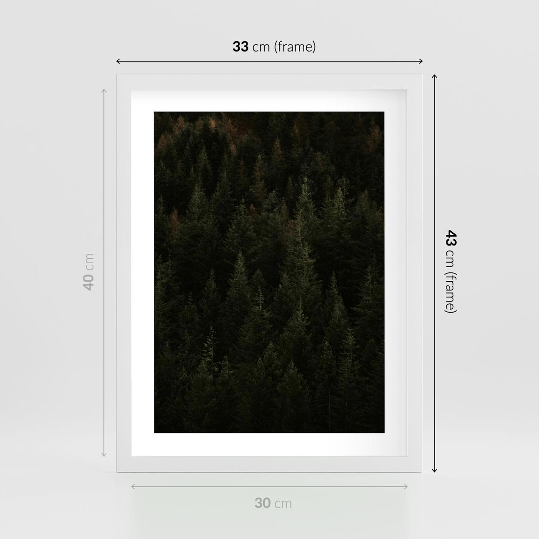 Plakat w ramie 30x40 - Ciemny las iglasty - las, iglasty - rama biała