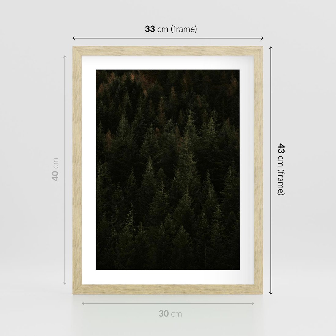 Plakat w ramie 30x40 - Ciemny las iglasty - las, iglasty - rama drewno