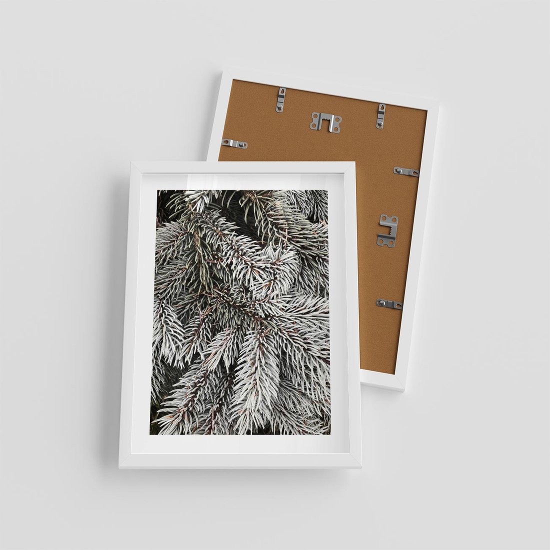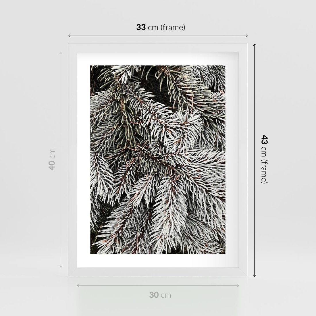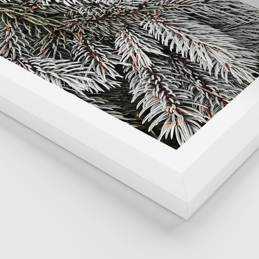 Plakat w ramie 30x40 - Cisza Zimowej Natury - zima, iglaste gałązki - rama biała