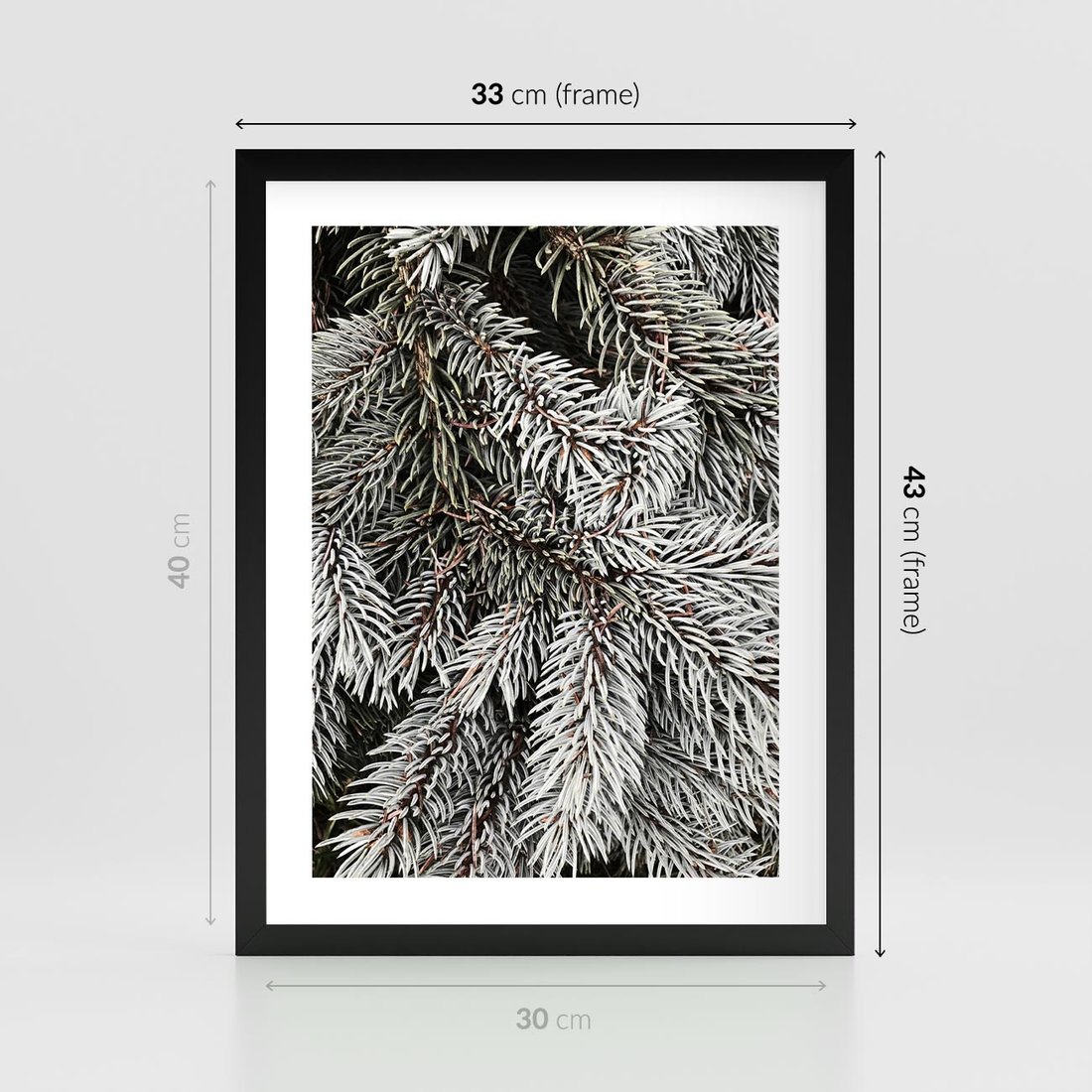 Plakat w ramie 30x40 - Cisza Zimowej Natury - zima, iglaste gałązki - rama czarna