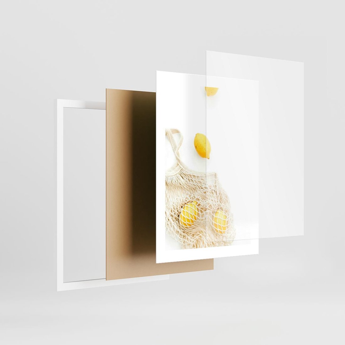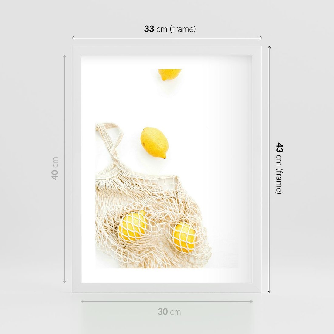 Plakat w ramie 30x40 - Cytrynowa Siatka - cytryny, materiałowa siatka - rama biała