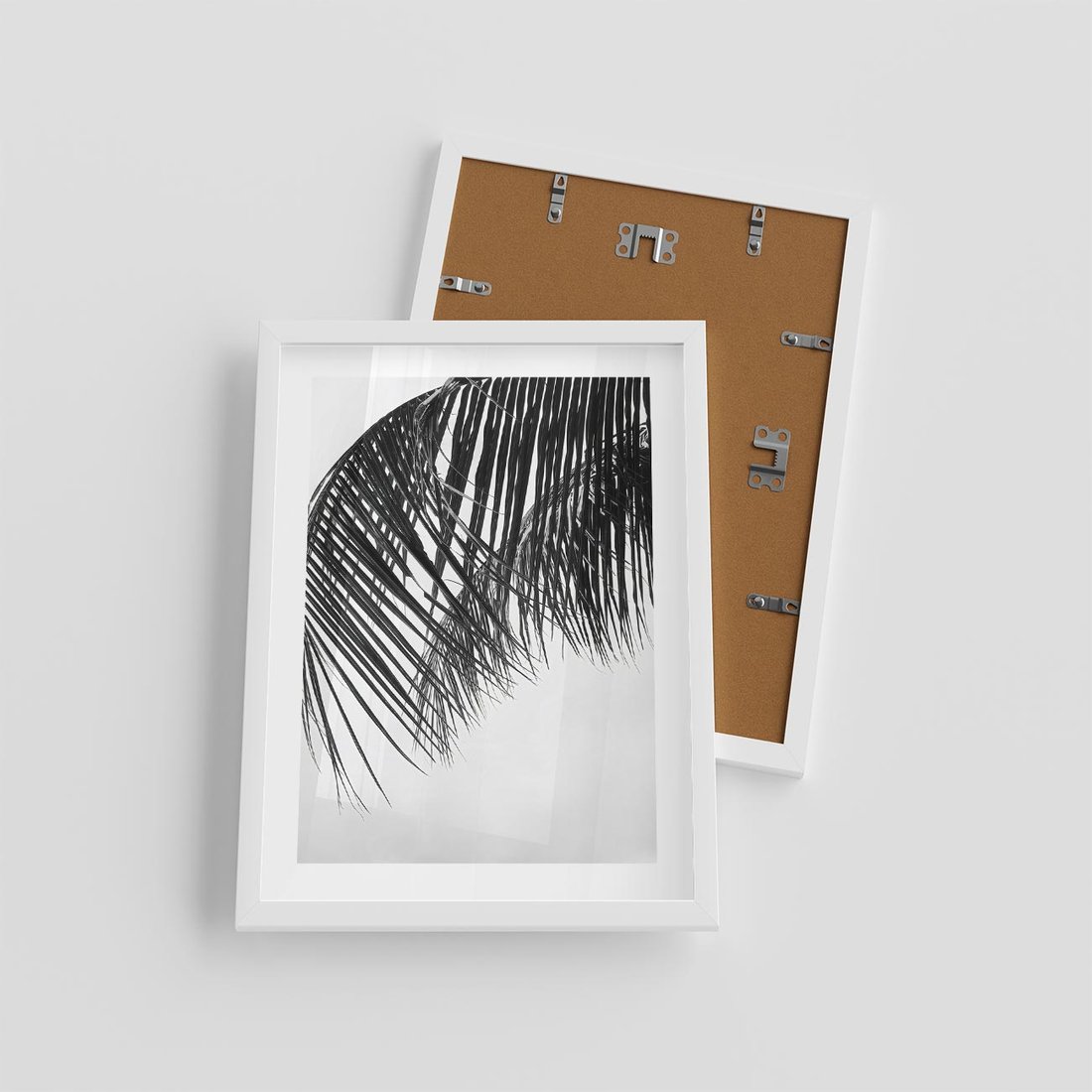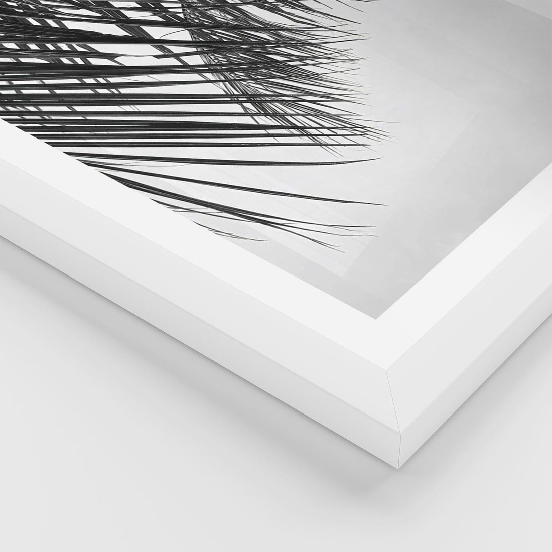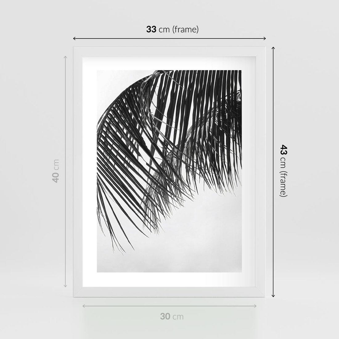 Plakat w ramie 30x40 - Czarno-Biały Kontrast - czarno białe zdjecie, palma - rama biała