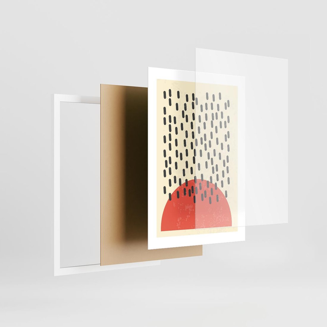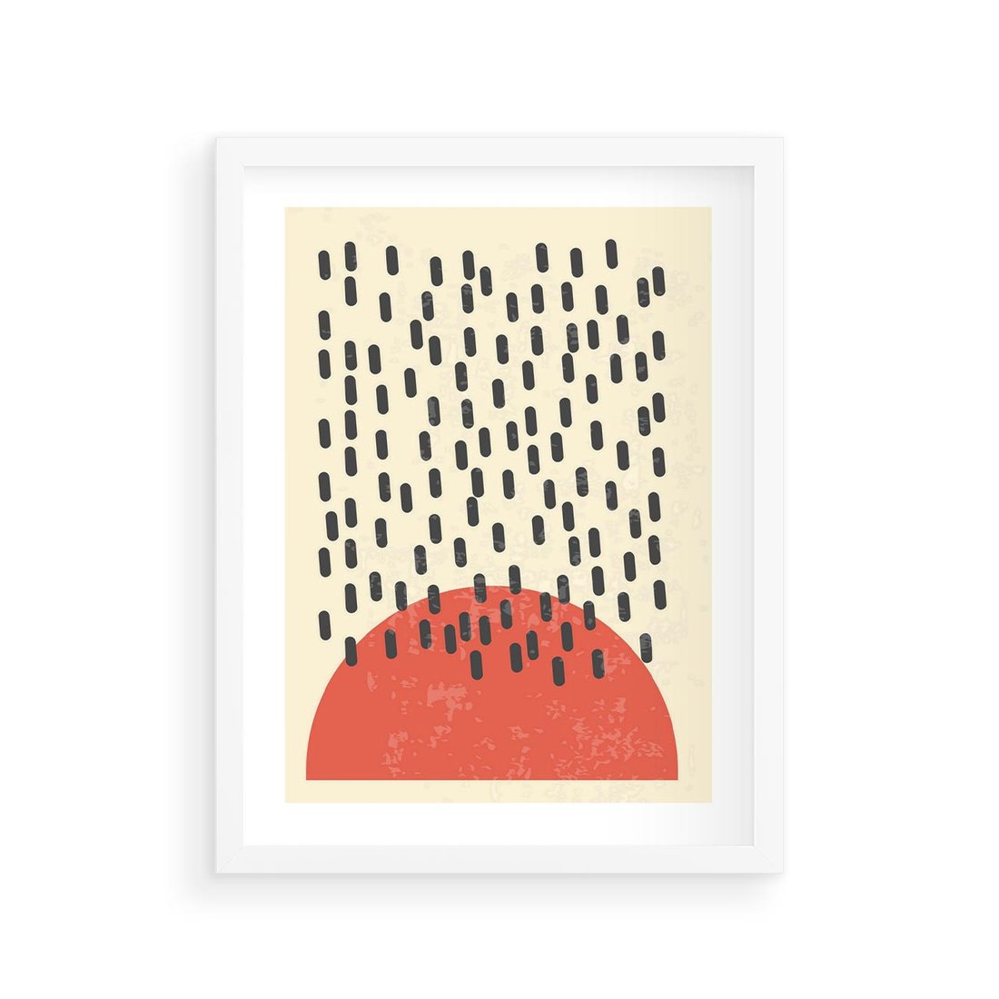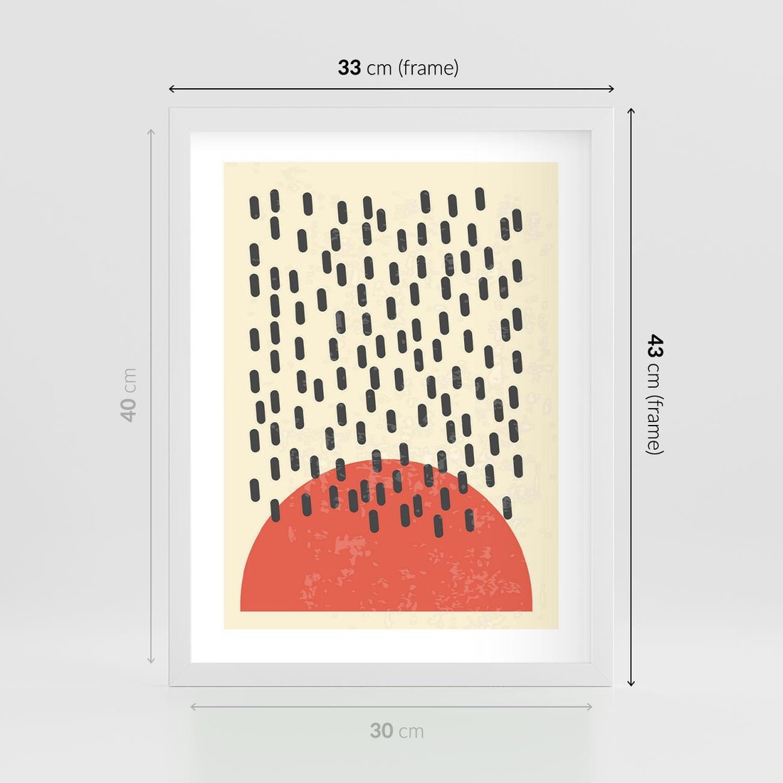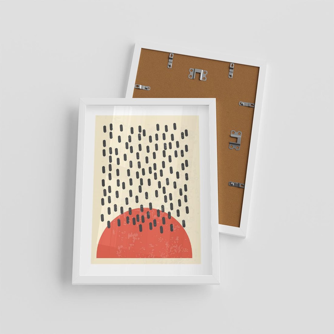 Plakat w ramie 30x40 - Czerwona Abstrakcja: Grafika z Wyrazistym Kołem - abstrakcja grafika, czerwone koło - rama biała