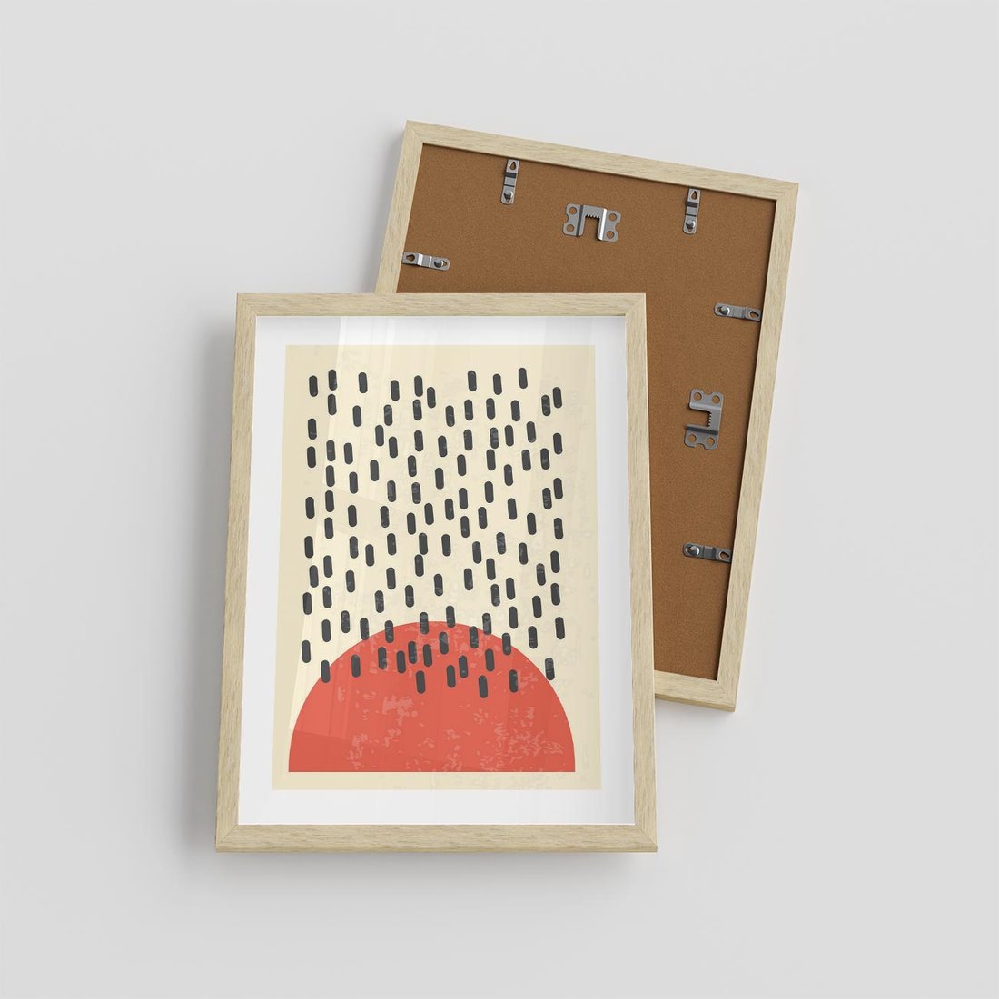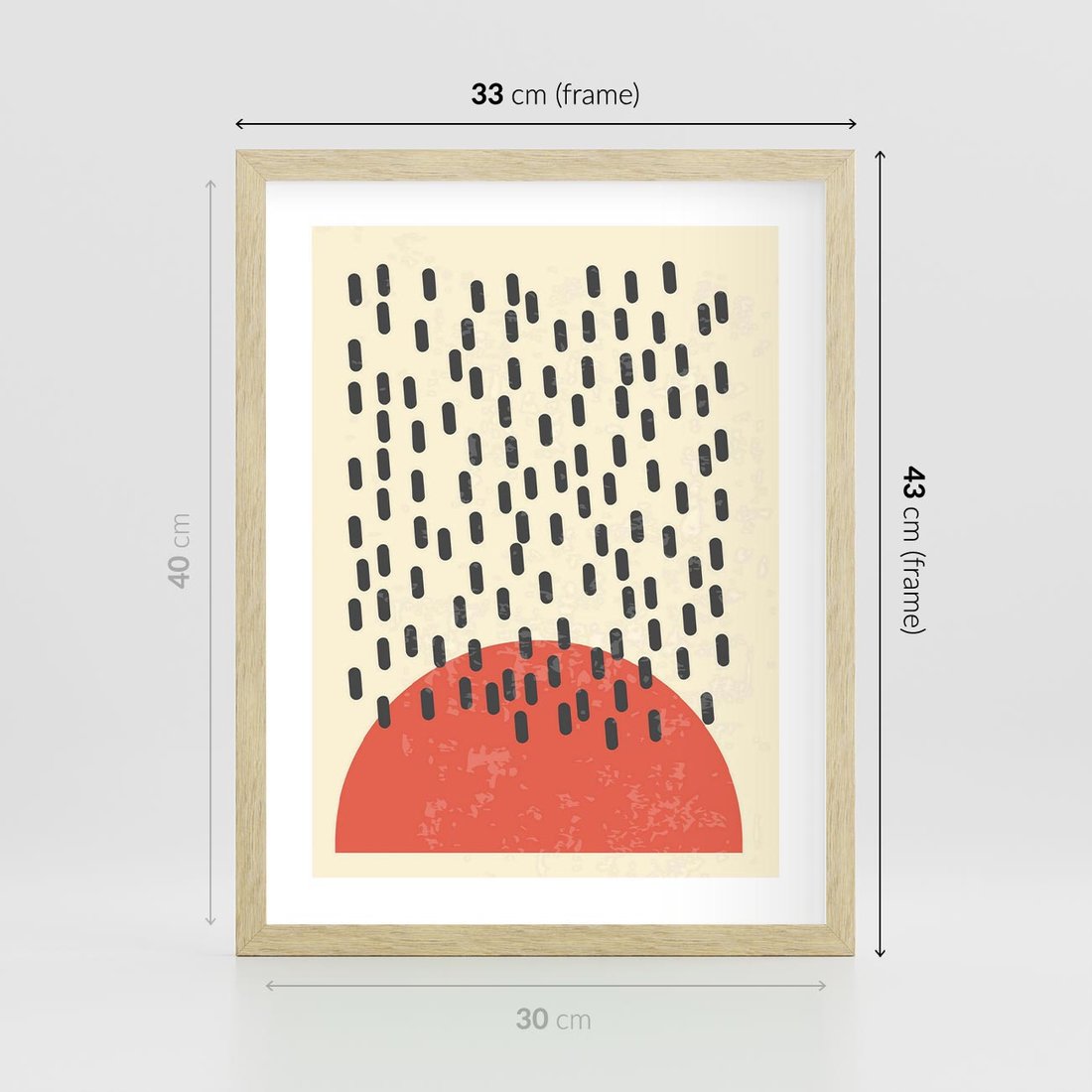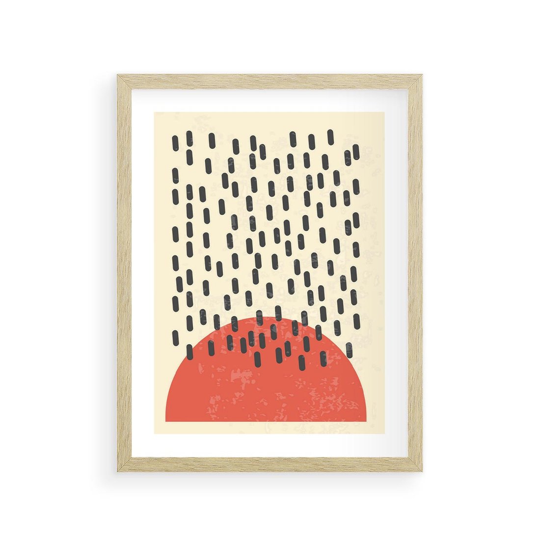 Plakat w ramie 30x40 - Czerwona Abstrakcja: Grafika z Wyrazistym Kołem - abstrakcja grafika, czerwone koło - rama drewno