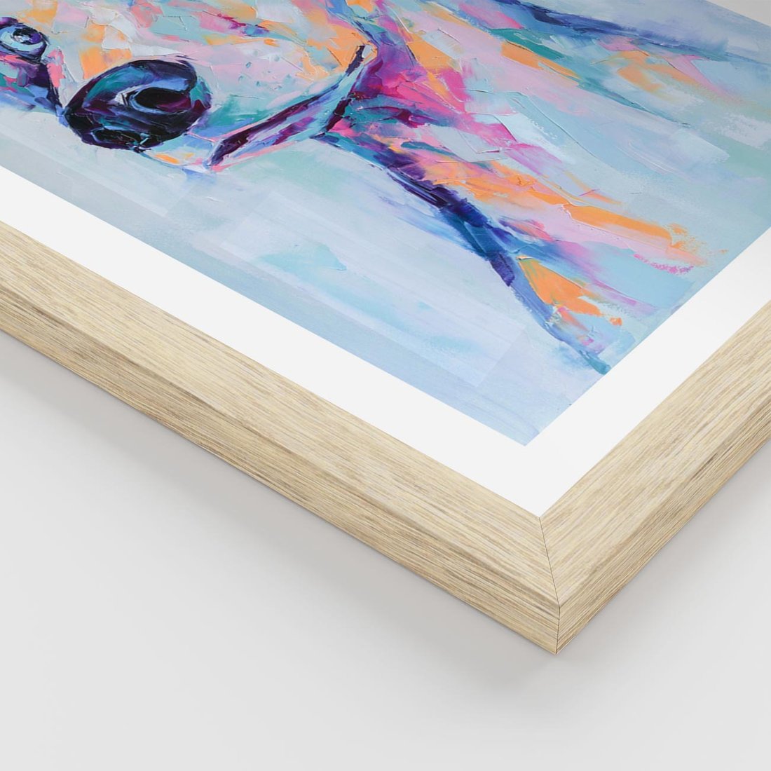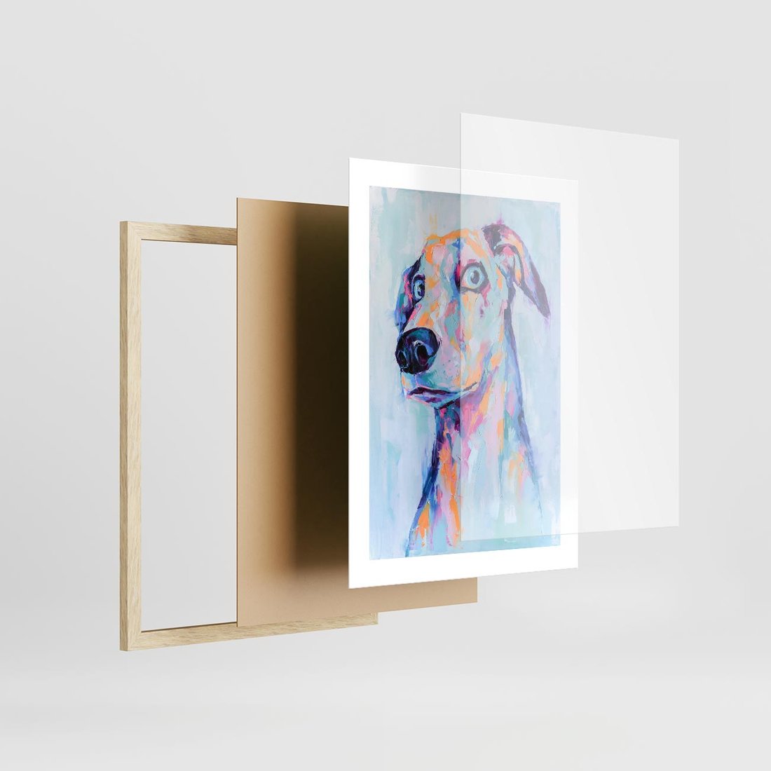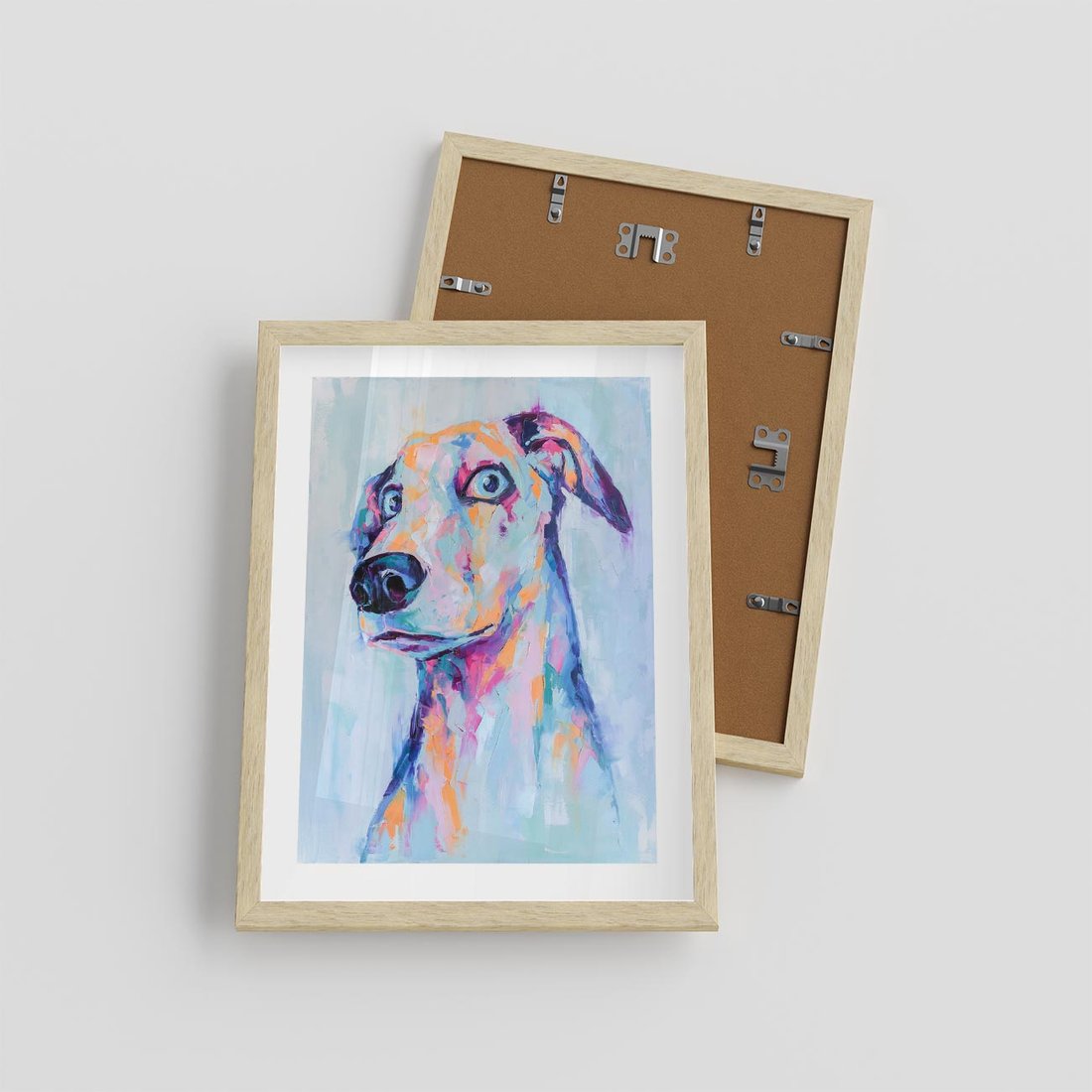 Ten olejny obraz to nie tylko portret psa, ale także zabawna i nowoczesna sztuka, która wykorzystuje pastelowe kolory, aby przekazać radość i humor. W centrum obrazu znajduje się portret uroczego psa. Pastelowe kolory nadają obrazowi lekkości i przyjemności. To dzieło sztuki doskonale pasuje do wnętrz, gdzie doceniane są zarówno nowoczesność, jak i poczucie humoru, a także jest znakomitą dekoracją dla miłośników psów.