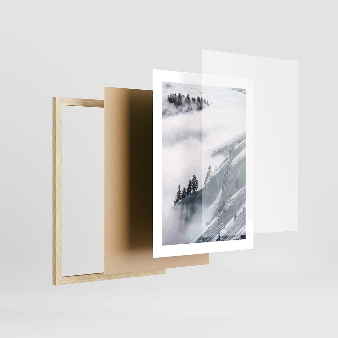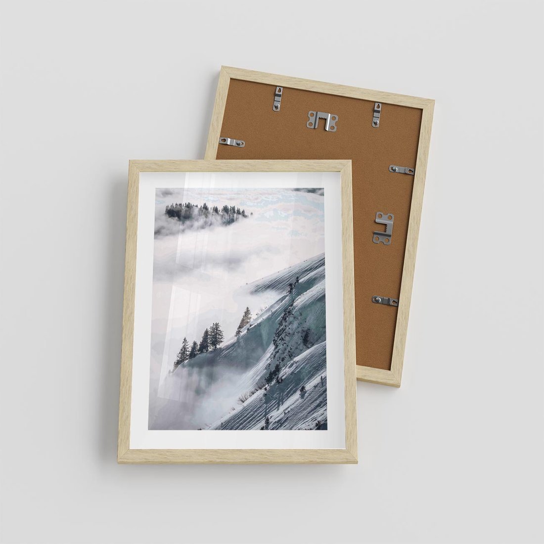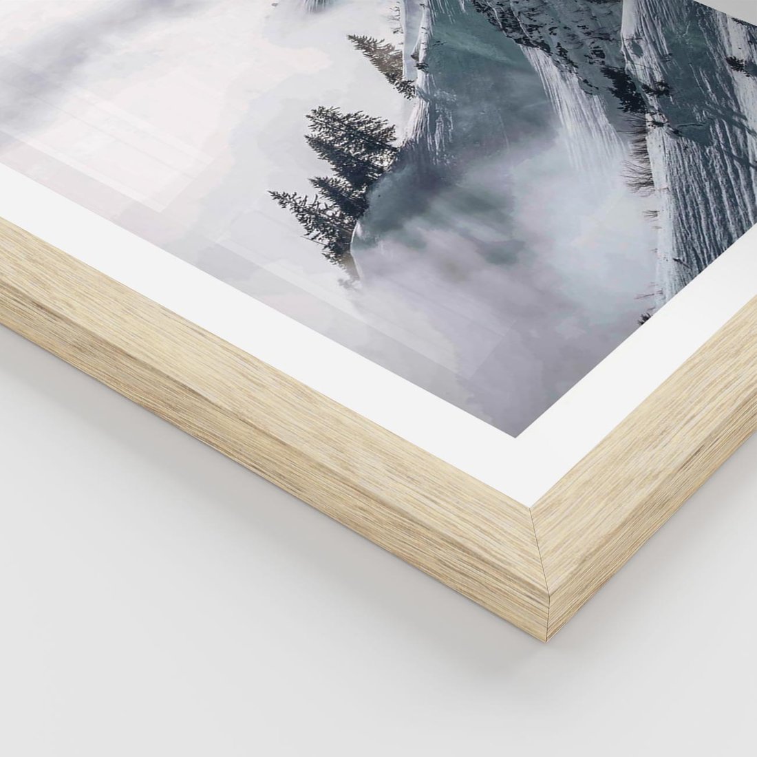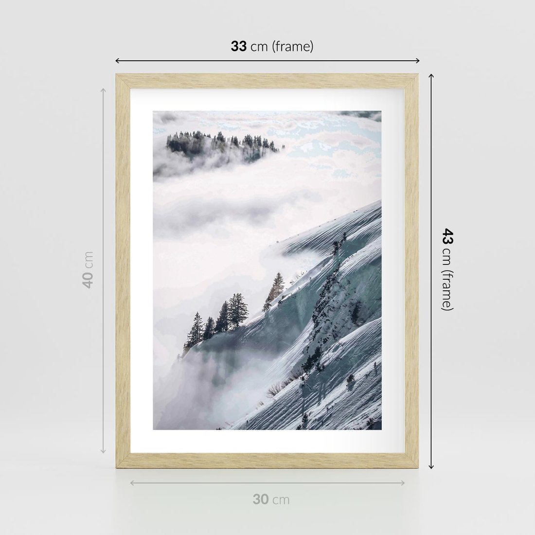 Plakat w ramie 30x40 - Czystość Natury - ośnieżone szczyty górskie, pejzaż - rama drewno