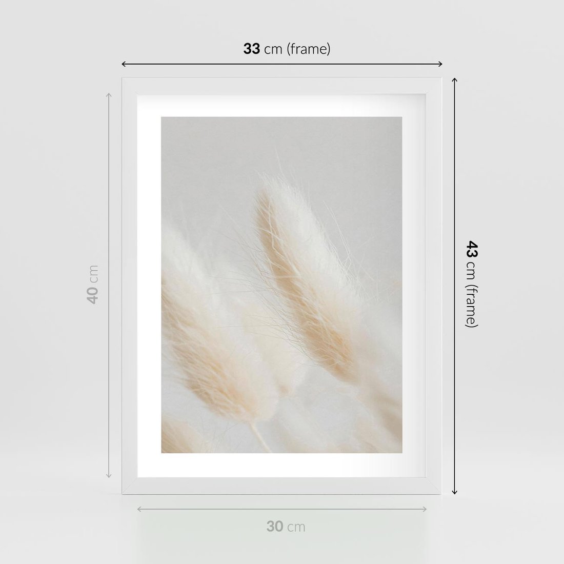 Plakat w ramie 30x40 - Czysty Minimalizm - białe trawy, minimalizm - rama biała